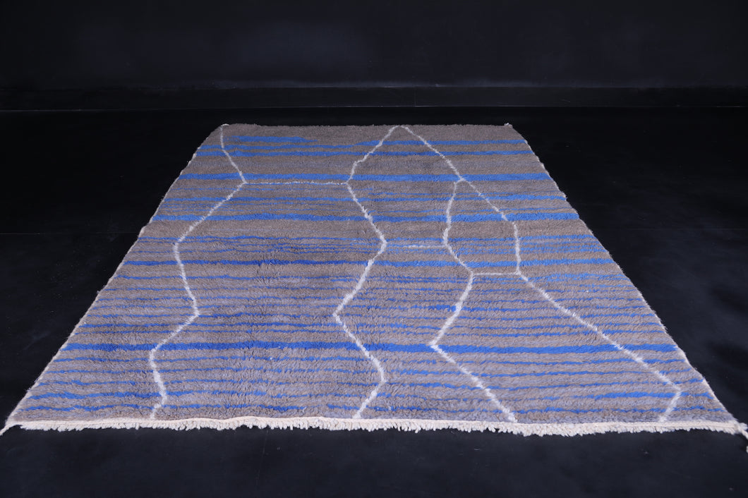 Bring sophistication and artistry into your space with this Custom Contemporary Moroccan Rug, expertly handwoven from 100% wool by skilled Moroccan artisans. The striking design features elegant curving lines and rich blue accents that blend traditional Berber motifs with a fresh, modern feel.