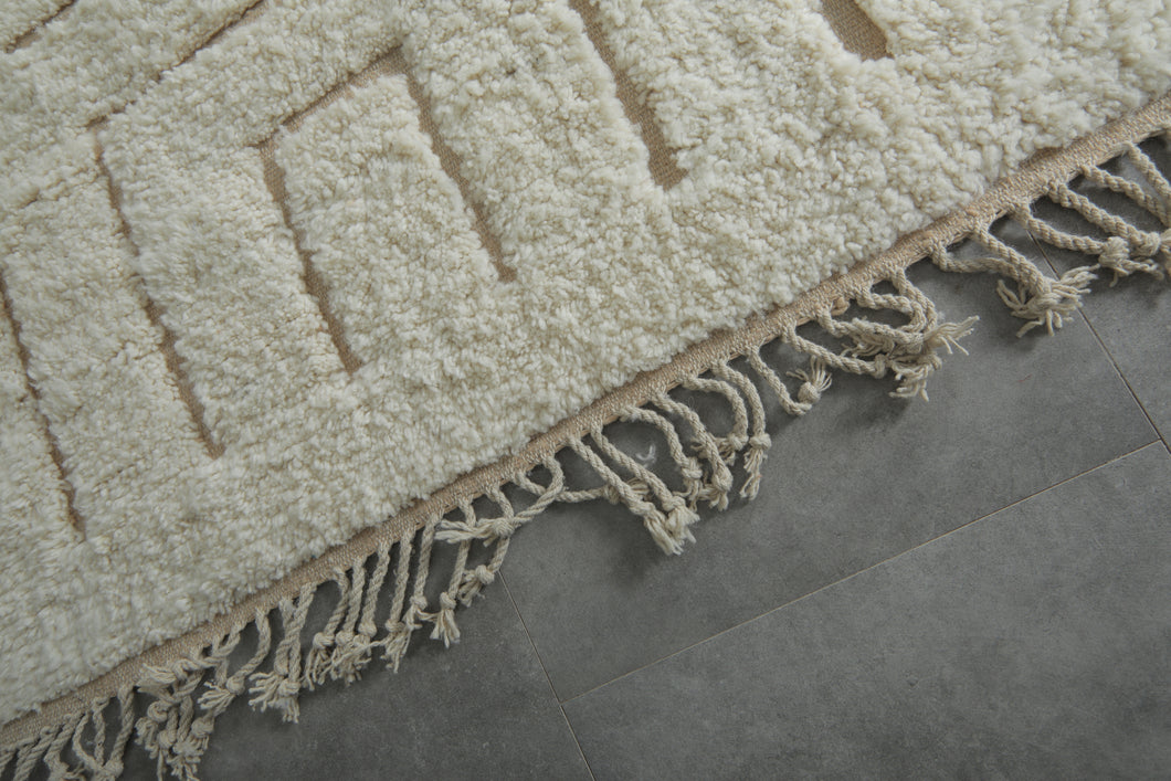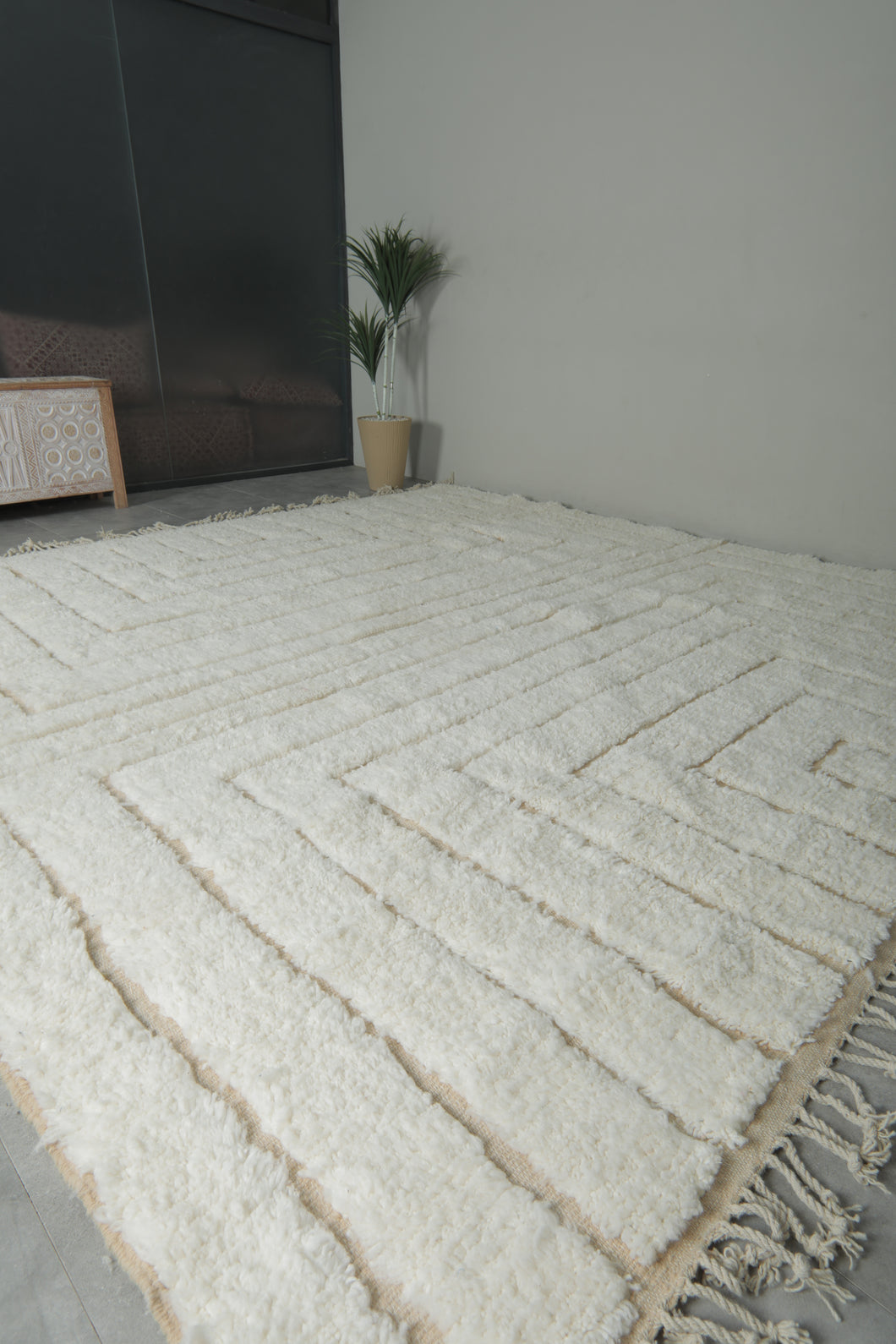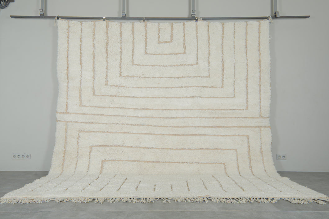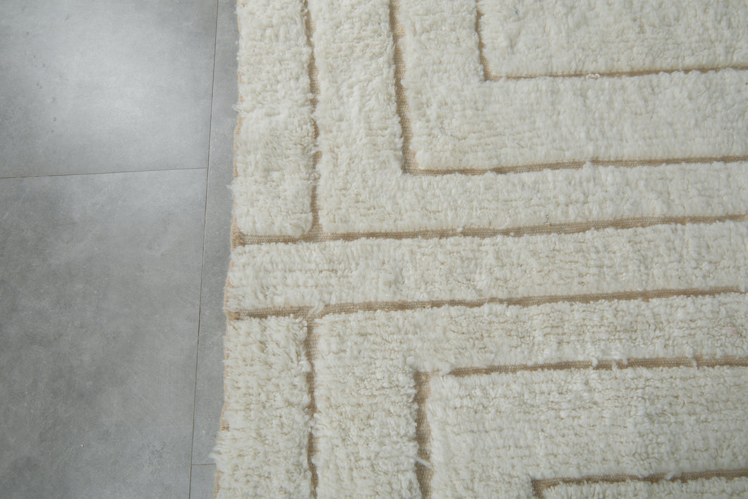 Upgrade your living space with this handmade Moroccan wool rug, showcasing a stunning layered geometric design. Crafted from premium, natural wool, this plush carpet offers a cozy texture and a versatile neutral palette, blending seamlessly with any interior décor. Perfect for adding warmth to your living room, bedroom, or office, this rug is as durable as it is stylish. Each piece is skillfully woven by Moroccan artisans, ensuring unique craftsmanship and an eco-friendly, high-quality finish. Elevate your home with a touch of elegance and timeless sophistication. Make this modern layered design rug yours today!
