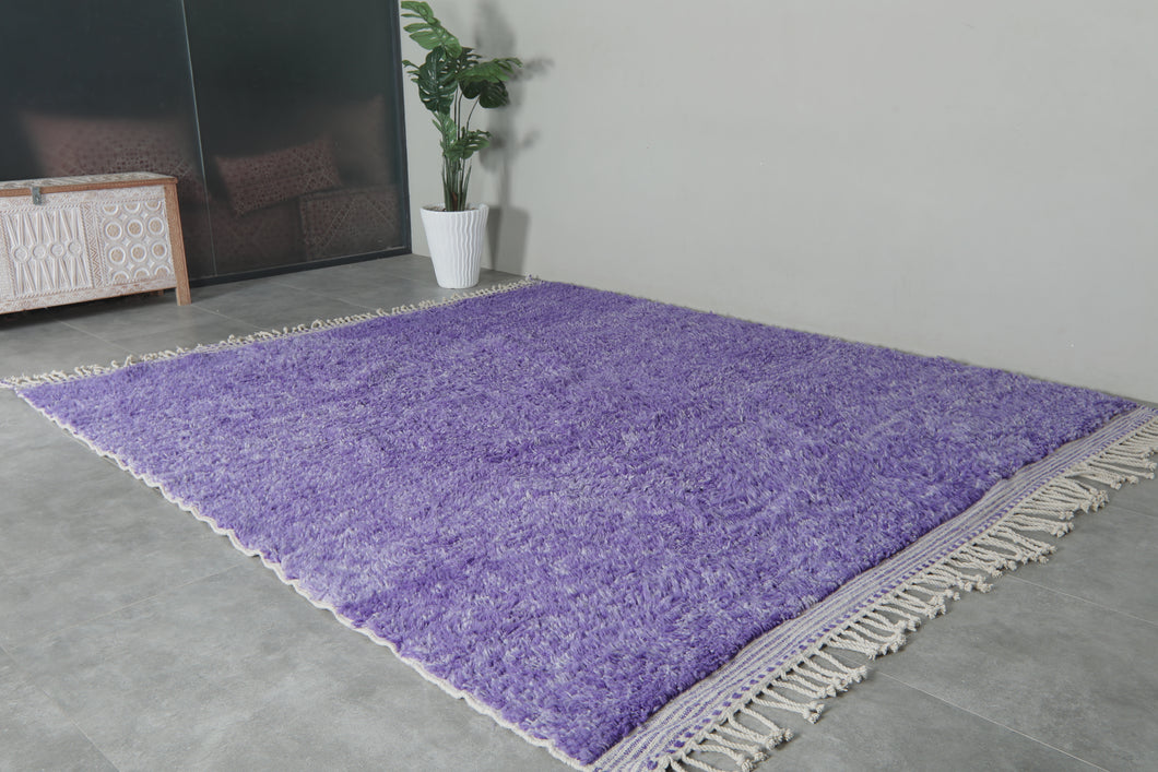 Handwoven Moroccan Rug - Purple Shaggy Wool Carpet - Custom Rug