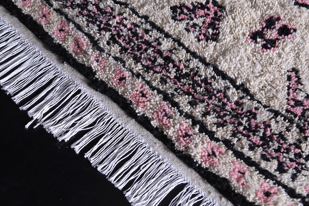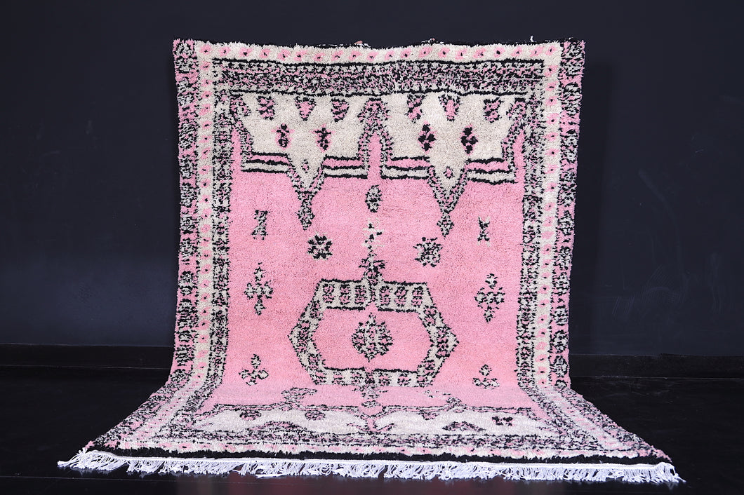 Add rich character and cultural charm to your home with our High Atlas Pink Azilal Wool Rug, a handcrafted masterpiece from Morocco’s iconic mountain region. Woven with precision by skilled artisans, this rug features a vibrant pink base adorned with intricate Berber motifs in deep purples, blacks, and creams—each symbol reflecting the historical essence of Azilal tradition.