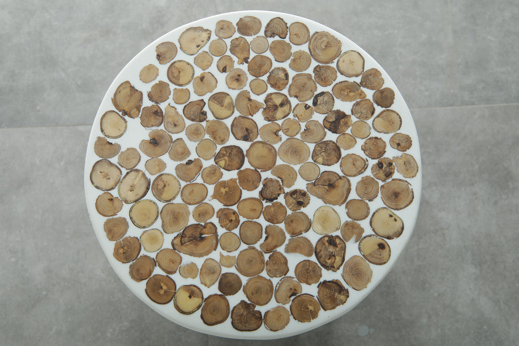 Handcrafted Berber Wood & White Resin Round Table