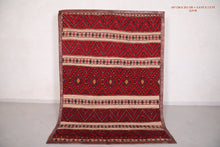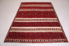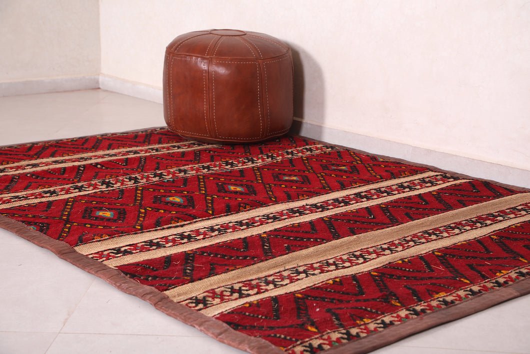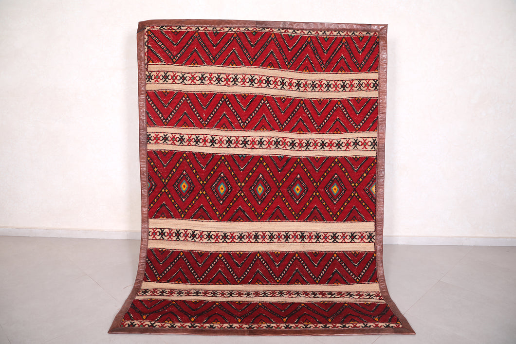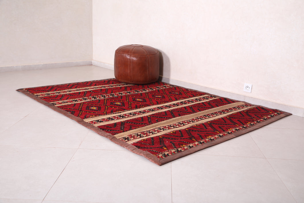 Introduce timeless elegance into your space with this handcrafted Moroccan Hassira rug, measuring 5.4 x 7.5 feet. Featuring vibrant red tones accented by diamond and zigzag motifs, this rug embodies traditional Moroccan artistry and cultural richness.