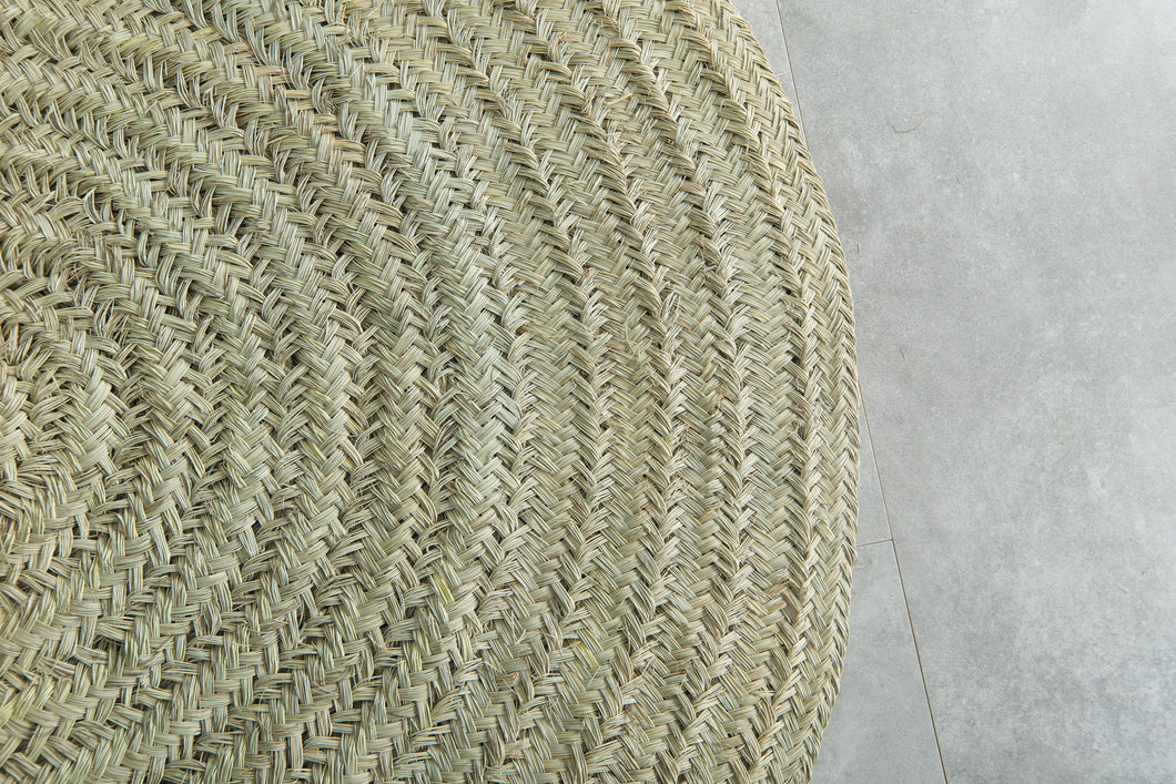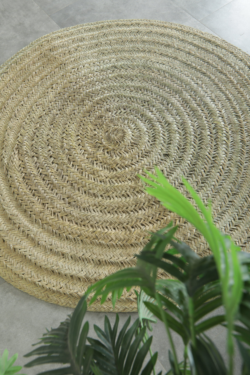 Whether used as a floor rug, a prayer mat, or a stylish base for low seating, the Hassira brings cultural heritage and sustainable living into your home. Its tightly braided circular pattern ensures durability, while its neutral tones blend seamlessly with any decor style.