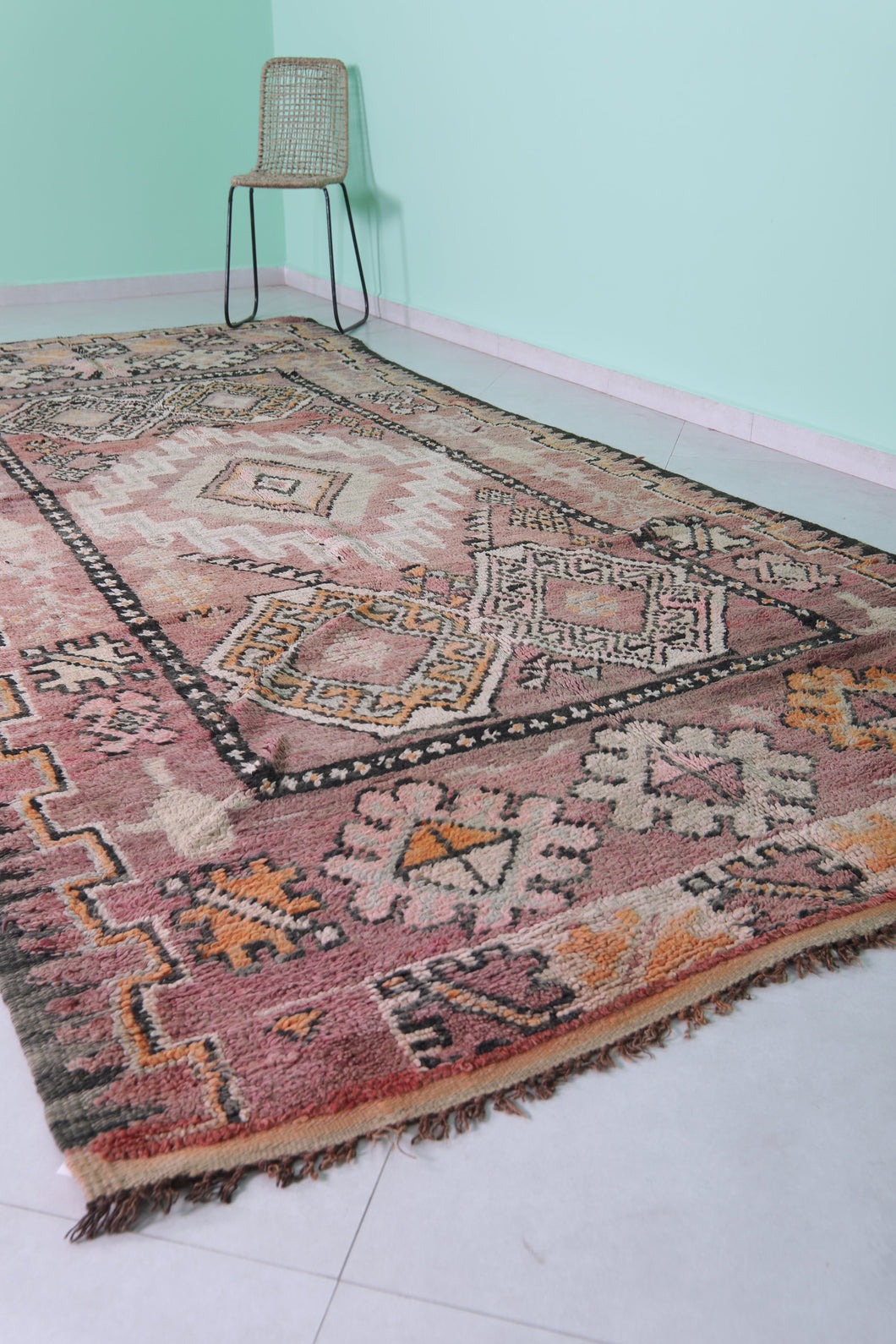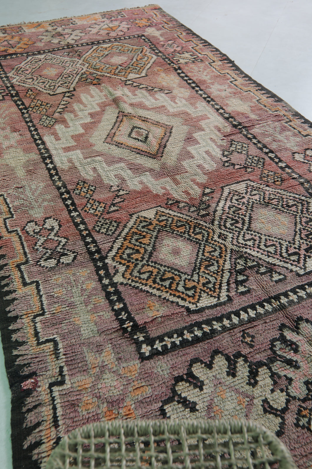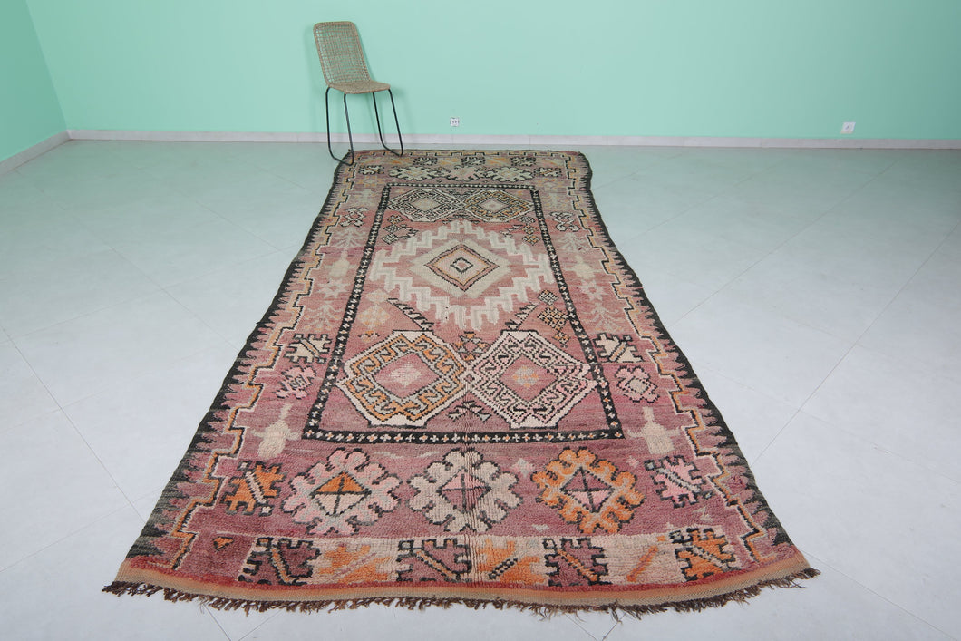 Handmade wool berber runner rug 5x12 feet - Pink moroccan tribal design -