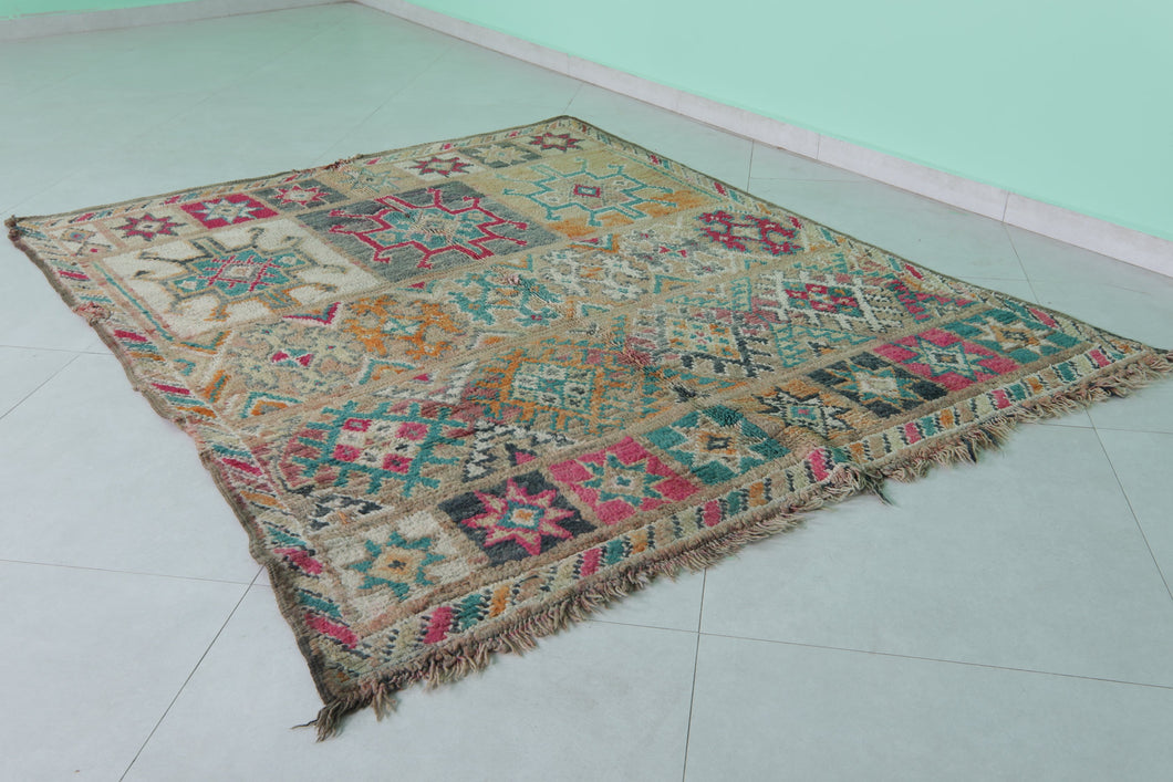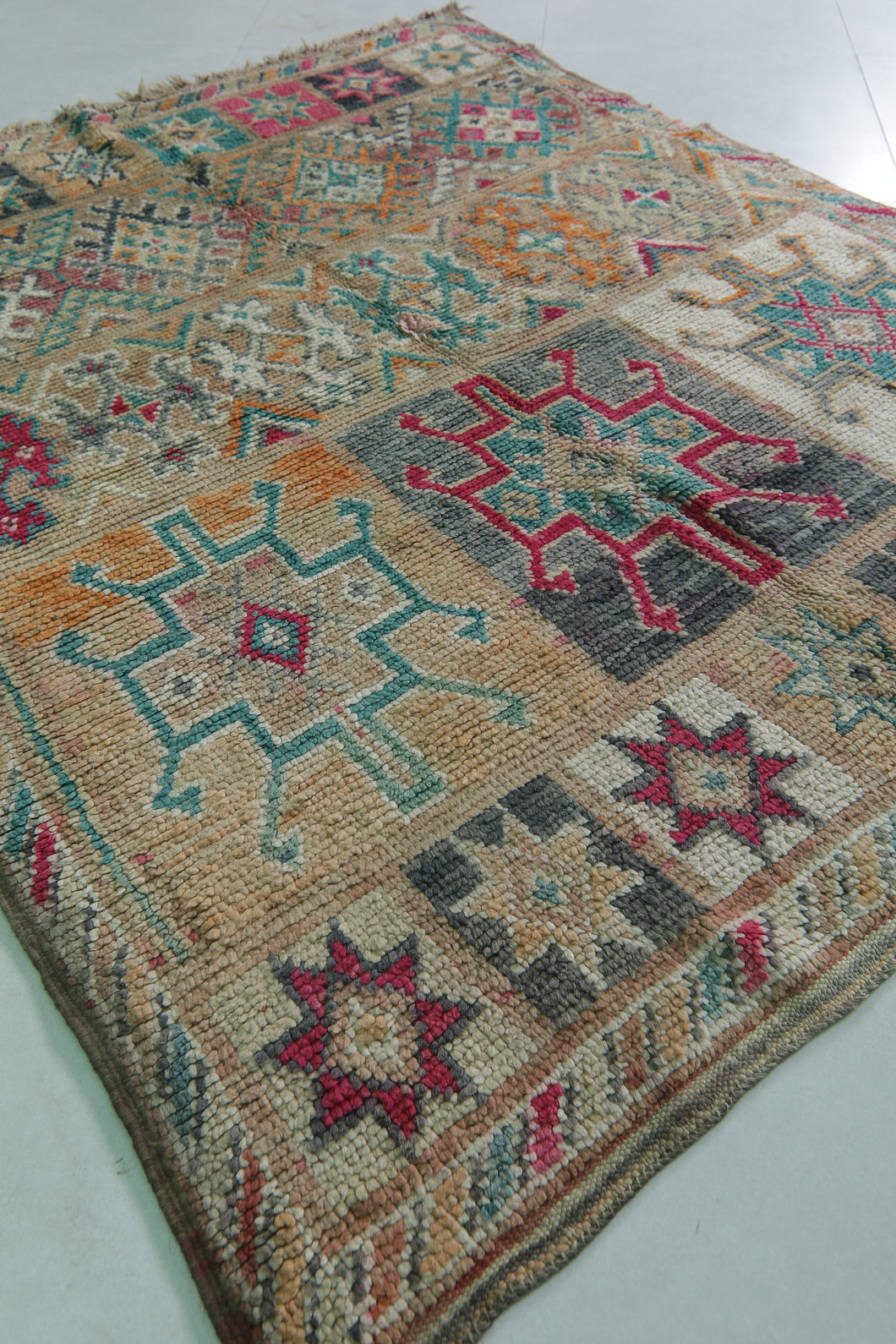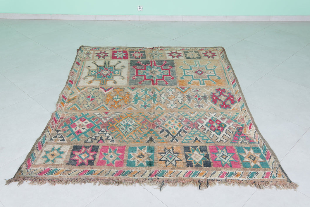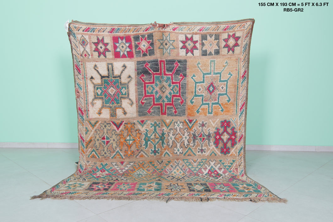 Add vibrant vintage charm to your space with this colorful Berber wool rug, measuring 5 x 6 feet. Handmade in Morocco, this tribal rug features bold geometric patterns that bring authentic boho style to any room. Crafted from durable wool, it offers both comfort and lasting beauty, making it a perfect accent for living rooms, bedrooms, or cozy corners. Embrace traditional Moroccan artistry with this unique vintage rug that enriches your home with color and culture..