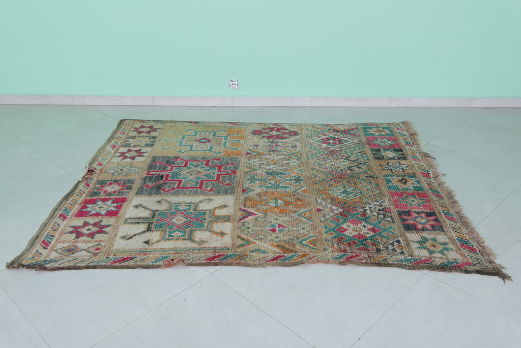 Colorful Berber wool rug 5x6 feet - Handmade Moroccan tribal rug -