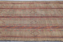 Bring a vibrant touch of tradition to your space with this authentic Tuareg rug, measuring 5.5 x 8.9 feet. Handwoven by skilled artisans, this stunning piece features bold vertical patterns interwoven with delicate geometric designs, reflecting the rich heritage of Tuareg craftsmanship. Made from natural materials, this eco-friendly rug offers both durability and unique charm. Perfect for enhancing living rooms, dining spaces, or offices, its timeless appeal effortlessly blends cultural artistry with modern interiors. A must-have for those who appreciate handmade elegance and sustainable design.