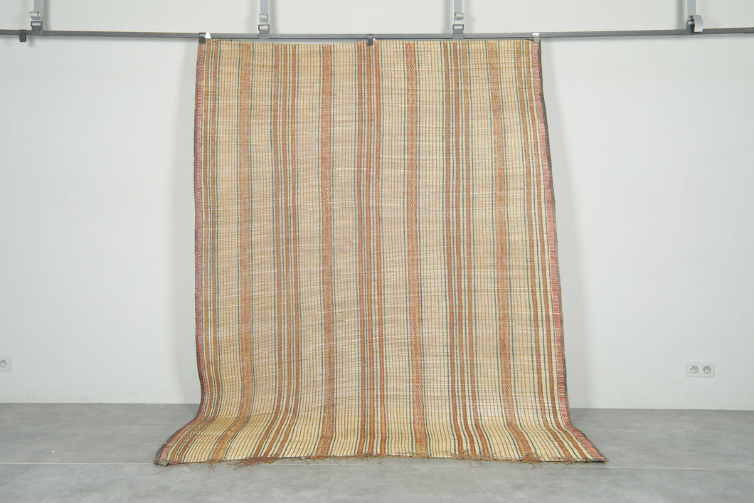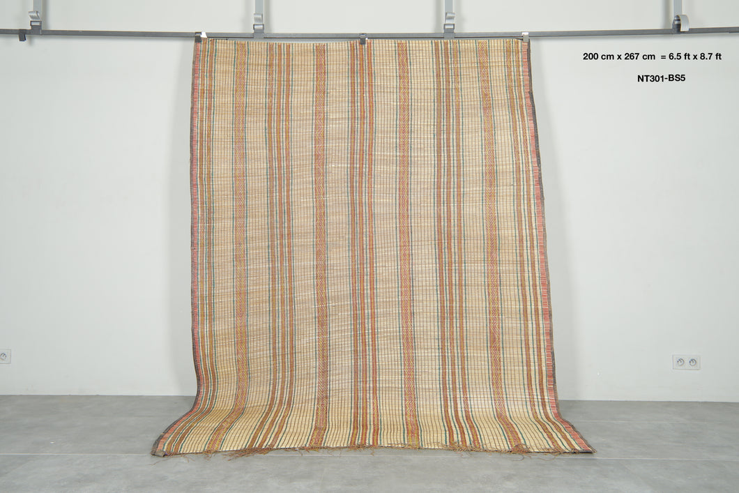 This Tuareg mat, measuring 6.5 ft by 8.7 ft, exemplifies traditional nomadic craftsmanship. Its durable construction and authentic design make it a versatile piece for both functional use and cultural appreciation. Ideal for adding a distinctive, artisanal touch to your living space, it reflects the heritage and artistry of Tuareg weaving techniques.