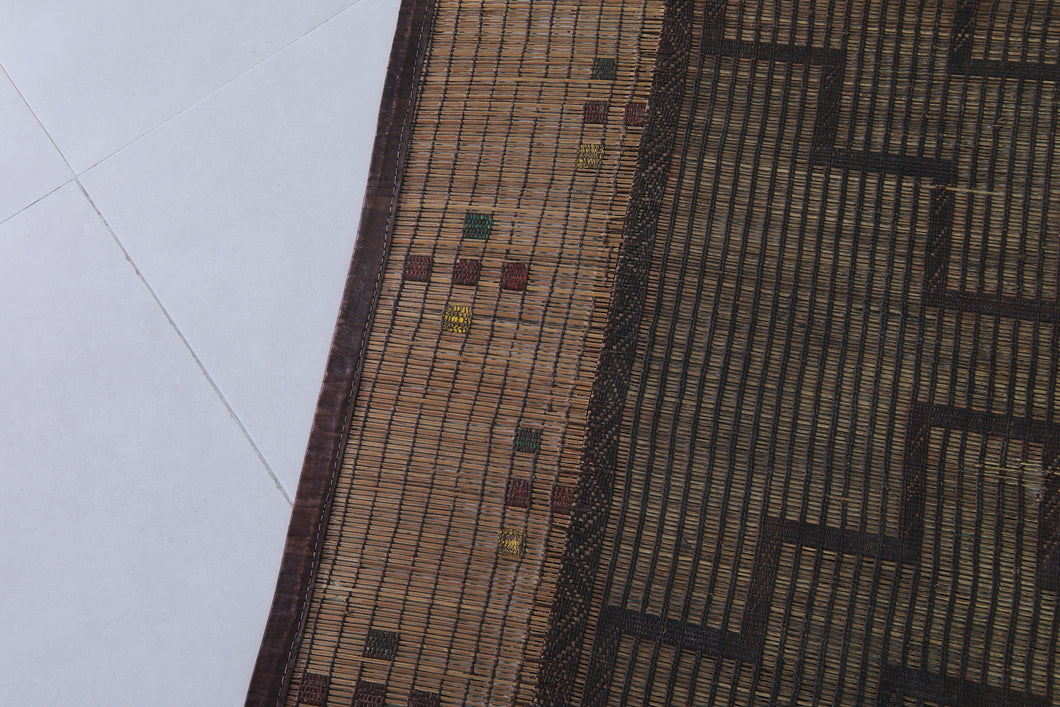 - 125x190 cm rug - 4.1x6.2 rug - 4’1”x6’2” rug - Adjustable rug - adjustable size rug - African décor - African rug - artisan rug - Artisan-made mat - bedroom rug - boho chic rug - Camel hide accent - Camel leather rug - center piece rug - collector’s rug - Cultural heritage rug - custom dimension rug - Dining room rug - Earth tone rug - Eco conscious rug - eco-friendly rug - Ethnic home decor - Express shipping - Fair trade rug - Floor mat - free express shipping rug - geometric pattern rug - Hand-loomed rug - handcrafted rug - Handcrafted Saharan mat - Handmade African mat - handwoven rug - Heavy-duty rug - indoor outdoor rug - Interior decor - large rug - leather edge rug - Leather mat - leather trimmed rug - Leather-bound rug - living room rug - Luxury rug - Mauritanian mat - Mauritanian rug - medium rug - minimalist tribal rug - modern rustic rug - Natural decor - natural fiber rug - Natural reed rug - Nomadic rug - Nomadic shepherd rug - Organic rug - Outdoor rug - Palm fiber mat - Palm fiber rug - Palm reed rug - Patio rug - Reed mat - Reed rug - Rug dimensions 4’1”x6’2” - Rug discount - Rug for outdoors - Rug sale - Rug wall art - rustic desert rug - Rustic home rug - Rustic tribal rug - Sahara decor - Sahara desert decor - Sahara masterpiece - Saharan masterpiece - Saharan rug - Showpiece rug - statement floor piece - Statement piece rug - statement rug - sustainable rug - timeless design rug - Tribal decor - tribal rug - Tuareg artisan rug - Tuareg masterpiece - Tuareg reed rug - Tuareg rug - Tuareg tribes rug - Unique rug - Vintage reed rug - Vintage-style rug - Wall hanging rug