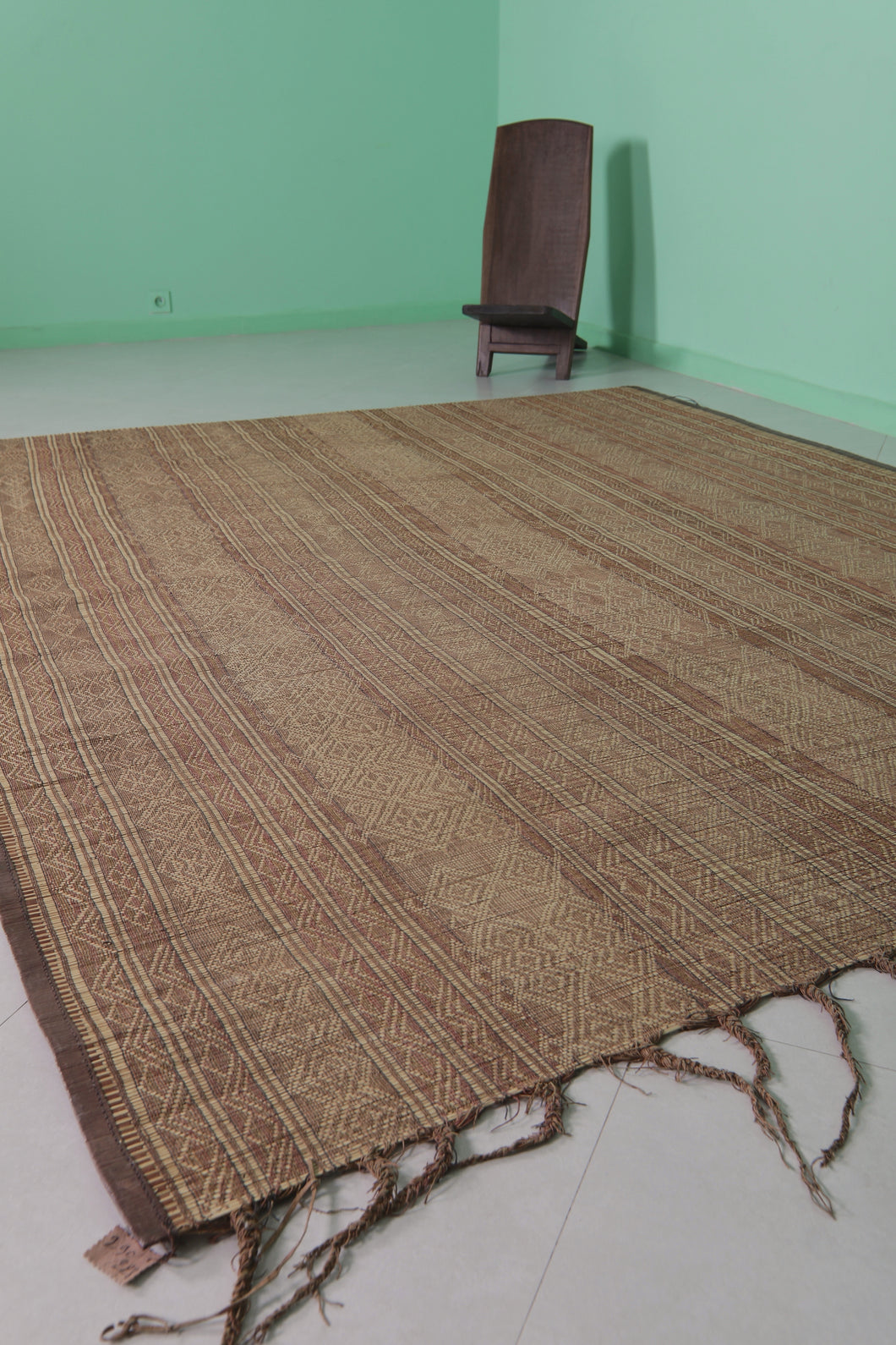 This 7.5 x 9.6 feet Tuareg rug is handcrafted using traditional reed weaving techniques combined with genuine leather accents. Its artisanal craftsmanship reflects authentic Tuareg heritage, offering durable and unique texture ideal for adding cultural sophistication to your living space. The natural materials ensure longevity while providing a distinct tactile experience that enriches any room’s décor.