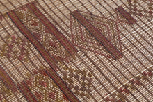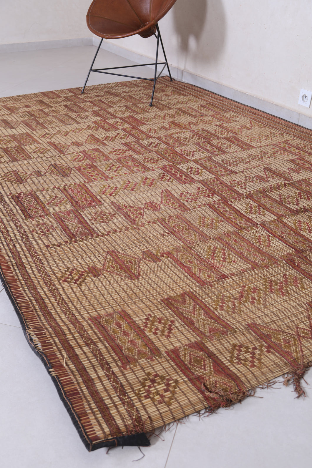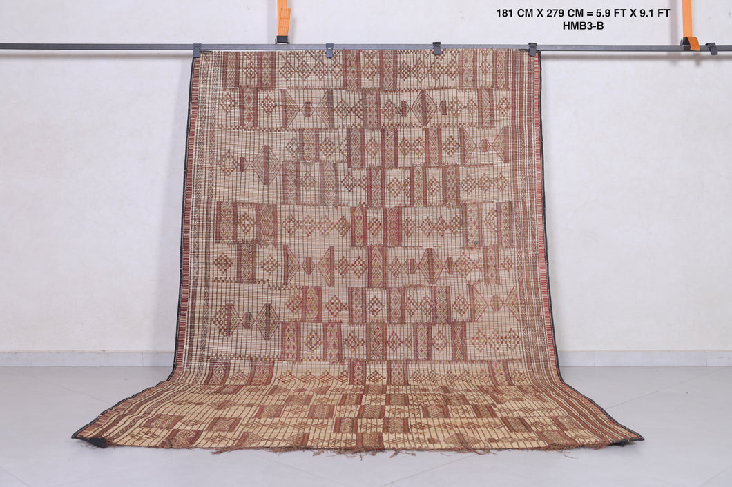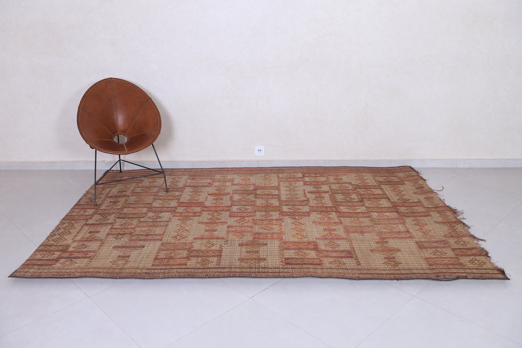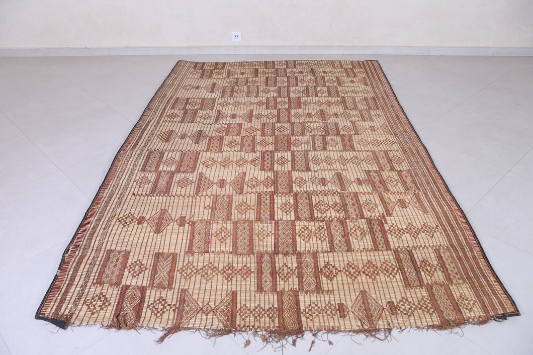 Add cultural sophistication to your decor with this 5.9x9.1 ft authentic African Tuareg rug. Handmade by skilled Tuareg artisans, it features intricate geometric patterns crafted from natural reeds and leather strips. Perfect for smaller spaces such as cozy living areas, bedrooms, or study rooms, this eco-friendly rug exudes rustic charm. Its lightweight and durable design makes it a practical yet stylish addition to your home. Own a piece of North African artistry today—shop now!