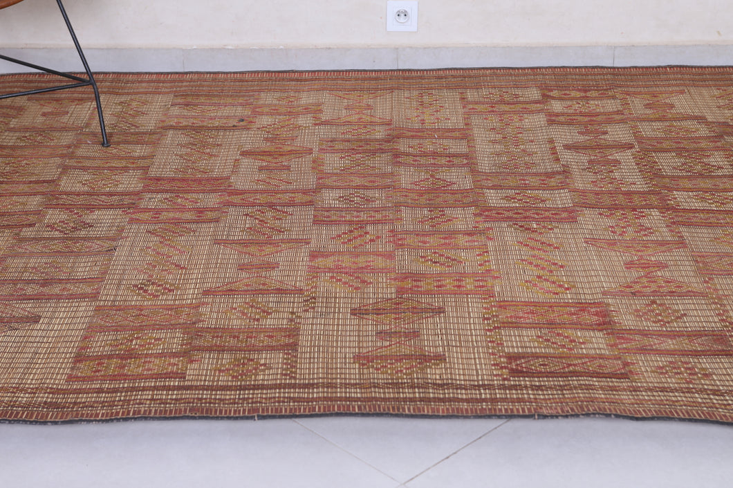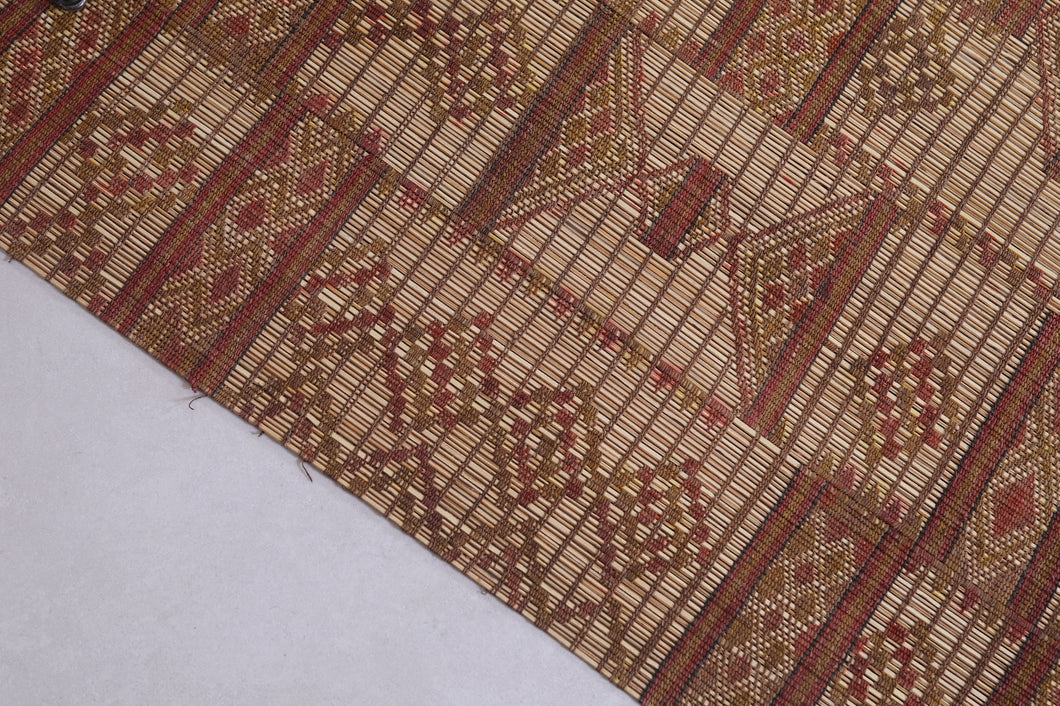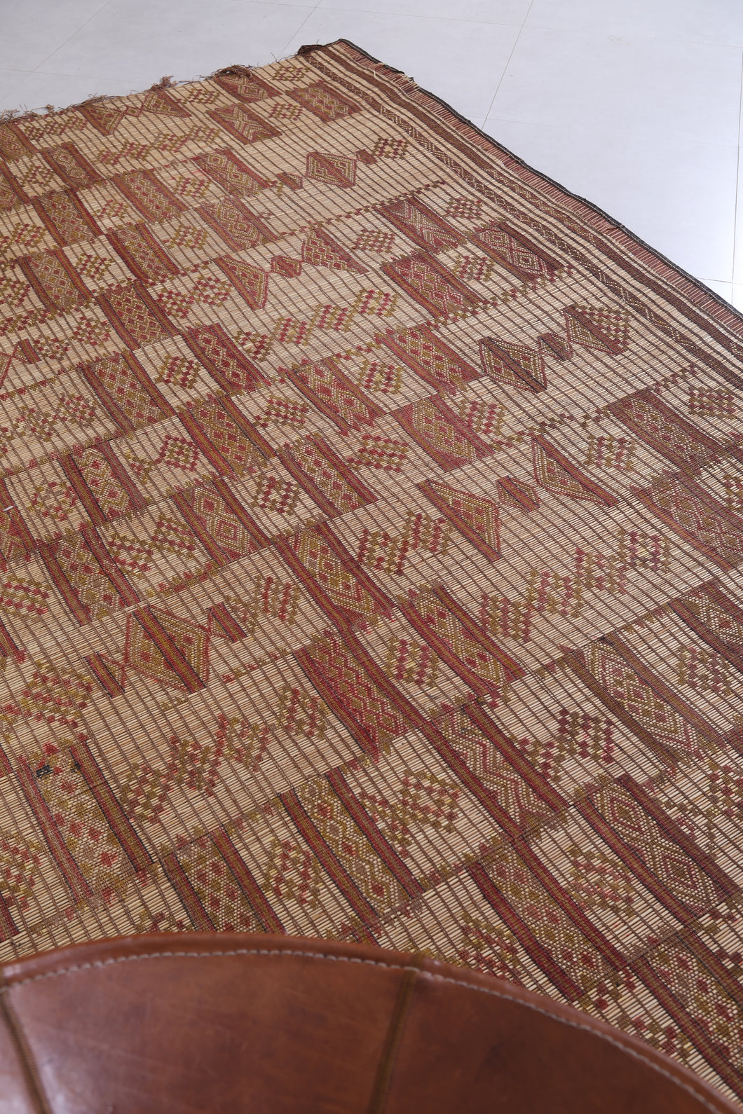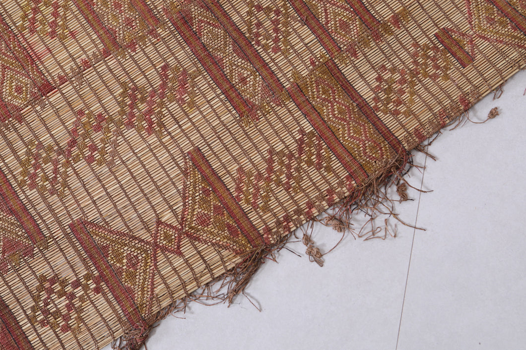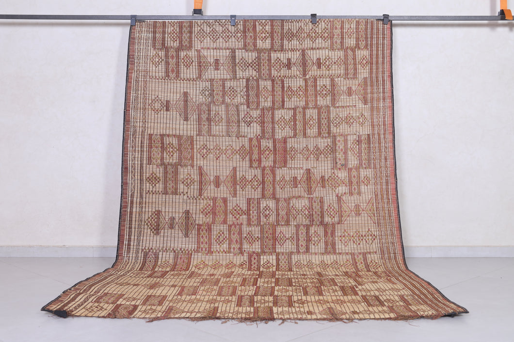 Add cultural sophistication to your decor with this 5.9x9.1 ft authentic African Tuareg rug. Handmade by skilled Tuareg artisans, it features intricate geometric patterns crafted from natural reeds and leather strips. Perfect for smaller spaces such as cozy living areas, bedrooms, or study rooms, this eco-friendly rug exudes rustic charm. Its lightweight and durable design makes it a practical yet stylish addition to your home. Own a piece of North African artistry today—shop now!