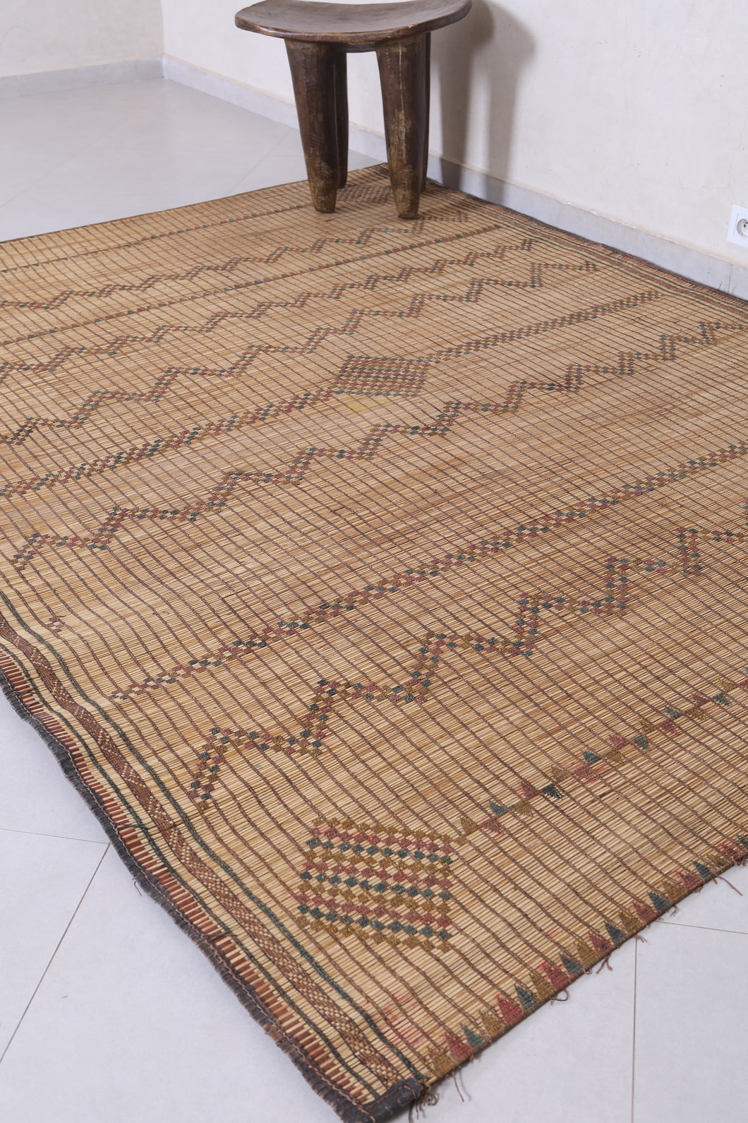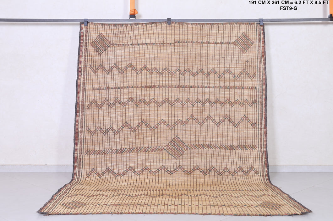 Authentic Tuareg Mat Rug - 6.2 x 8.5 Feet | Handcrafted Nomadic Design