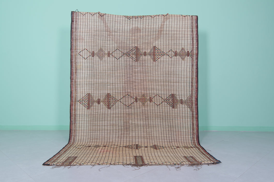 Introduce timeless charm to your home with this authentic Tuareg rug, measuring 5.7 x 8.3 feet. Handwoven by skilled artisans, it features intricate diamond and geometric patterns, bordered with vibrant accents that reflect the rich heritage of Tuareg craftsmanship. Crafted from eco-friendly, durable materials, this rug is both stylish and long-lasting. Ideal for living rooms, bedrooms, or dining areas, it brings warmth and cultural sophistication to any space. A perfect blend of tradition and modern design, this rug makes a standout addition to your décor.