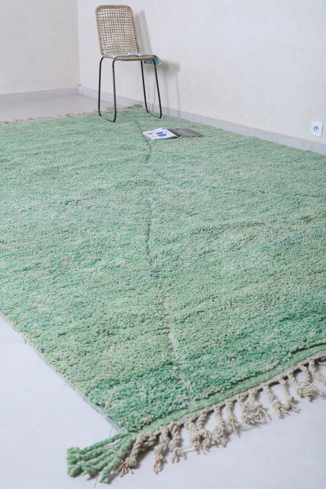 Transform your space with this stunning handmade Beni Ourain rug, crafted from premium Moroccan wool. The soft green hue adds a refreshing and tranquil touch, effortlessly blending into both contemporary and traditional interiors. Skilled Berber artisans carefully weave this carpet, showcasing its intricate texture and subtle diamond pattern for a timeless design. Its plush, cozy surface makes it perfect for living rooms, bedrooms, or any space needing a touch of elegance and comfort. Durable, high-quality, and unique, this rug combines heritage and modern style to elevate your home. Make a statement with this exceptional Moroccan treasure today!