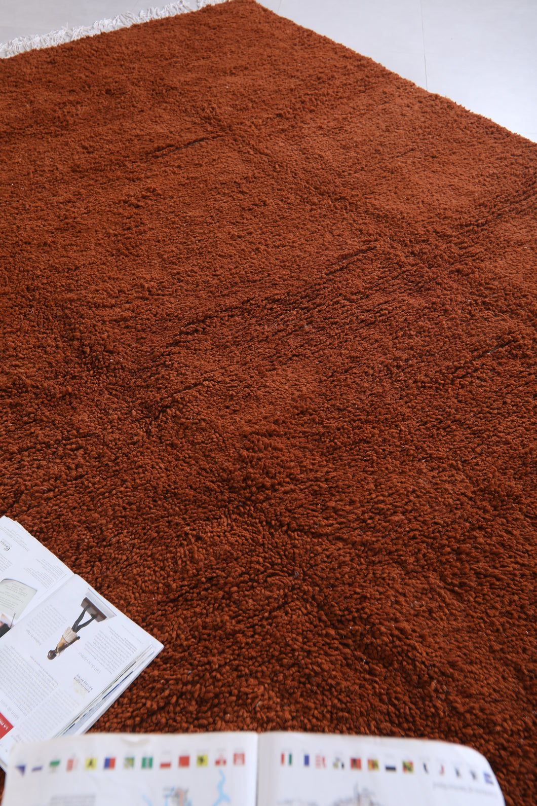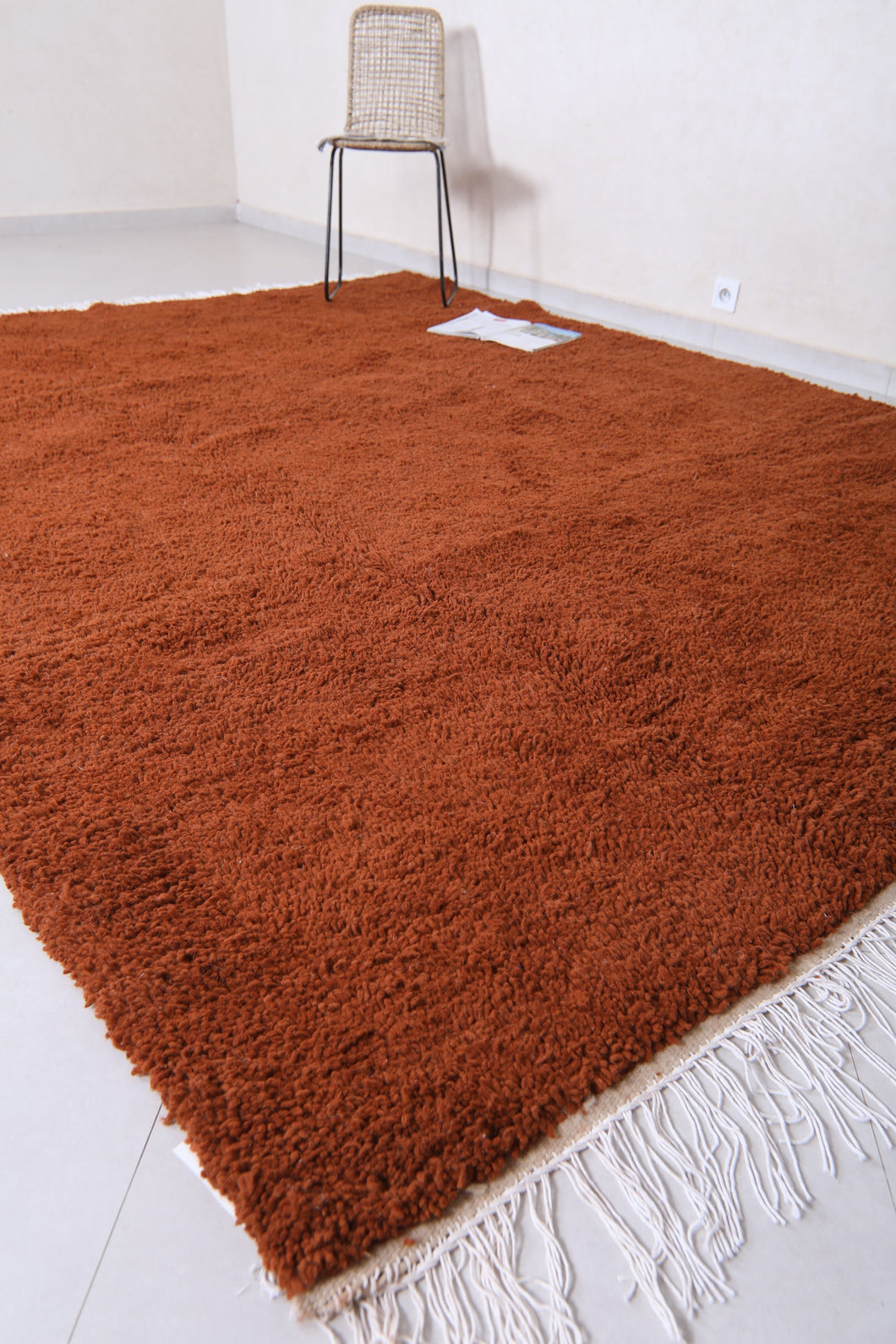 Elevate your home decor with this exquisite handmade Moroccan Berber rug, crafted from the finest quality wool. The rich terracotta shade adds warmth and depth to any space, making it an inviting centerpiece for living rooms, bedrooms, or cozy nooks. Its luxurious texture, combined with timeless Beni Ourain design, delivers unmatched comfort and elegance. Woven by skilled Moroccan artisans, this durable carpet blends traditional craftsmanship with modern simplicity, creating a versatile piece that fits any interior style. Perfect for those seeking a unique and statement-making addition to their home. Experience luxury with this stunning Moroccan treasure today!