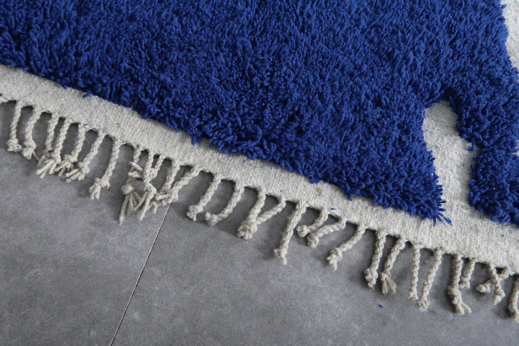 Elevate your home décor with this exquisite handmade Moroccan Beni Ourain rug, crafted with premium quality wool. Featuring a calming blue hue with delicate ivory diamond patterns, this custom Berber rug adds a touch of elegance and sophistication to any space. Its plush texture and intricate design showcase the skill of Moroccan artisans, making it a timeless piece perfect for living rooms, bedrooms, or offices. Durable and comfortable, this rug brings warmth and luxury while enhancing your interior aesthetics. Invest in authentic craftsmanship and transform your home with this stylish Moroccan masterpiece.