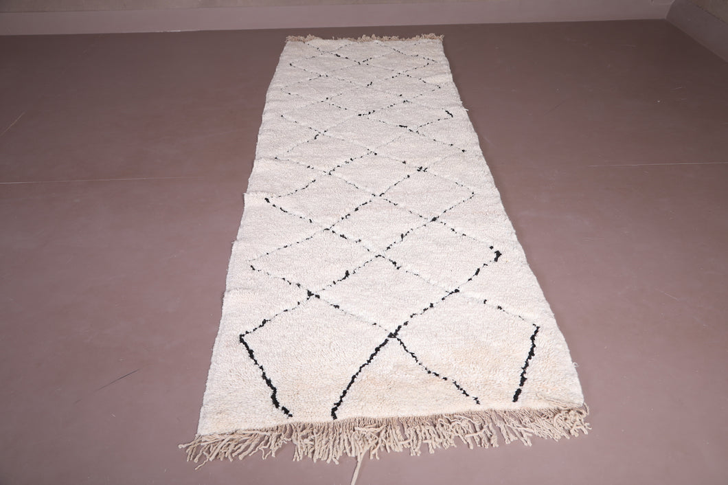 Transform your hallway or narrow space with this custom handmade Berber runner rug, a Moroccan Atlas carpet with timeless charm. Made from 100% natural wool, this rug features a minimalist diamond pattern in black on an ivory background, perfect for enhancing modern or traditional interiors. Its elongated design is ideal for entryways, hallways, or alongside beds, offering durability and a soft underfoot feel. Handcrafted by skilled Moroccan artisans, this runner rug combines cultural heritage with practicality. Add elegance and warmth to your home with this stunning Berber runner.