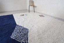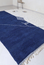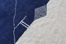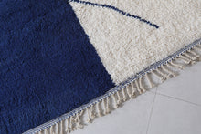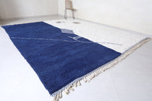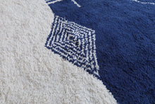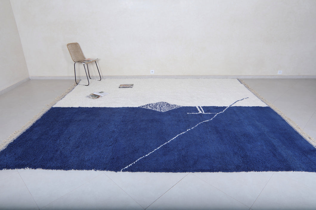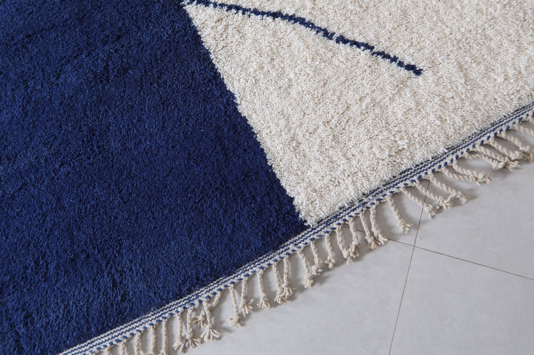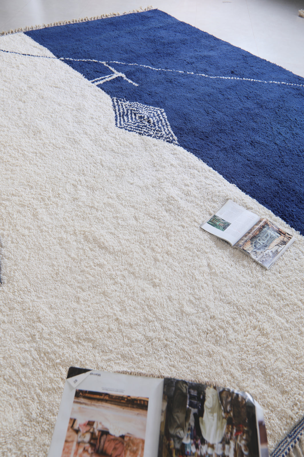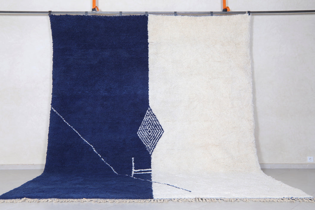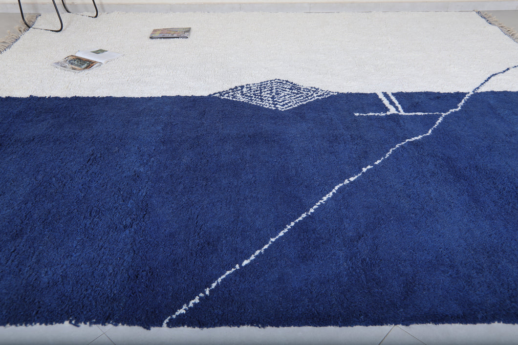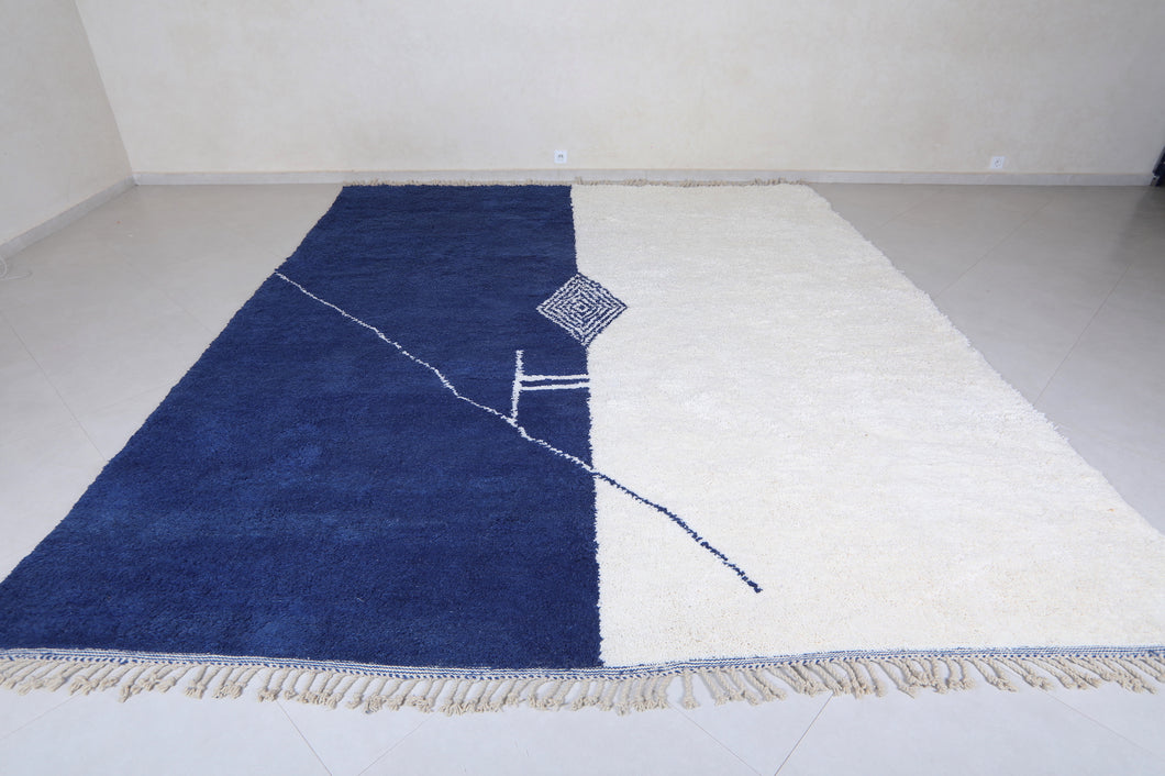 Enhance your living space with this stunning handmade Moroccan rug, featuring a bold contrast of deep blue and crisp white. Crafted from high-quality wool, this custom area rug combines contemporary elegance with traditional Moroccan artistry. Its unique two-tone design is highlighted by intricate diamond-shaped patterns, adding a touch of sophistication and cultural charm. Ideal for living rooms, bedrooms, or offices, this versatile rug offers durability and plush comfort. Elevate your interior decor with a one-of-a-kind piece that merges functionality and timeless style. Customizable sizes available to suit your space perfectly.