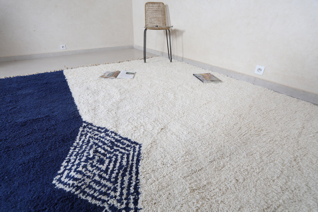Custom Handmade Moroccan Rug - Blue and White Wool Area Rug