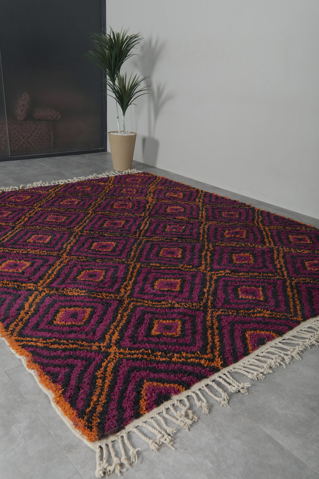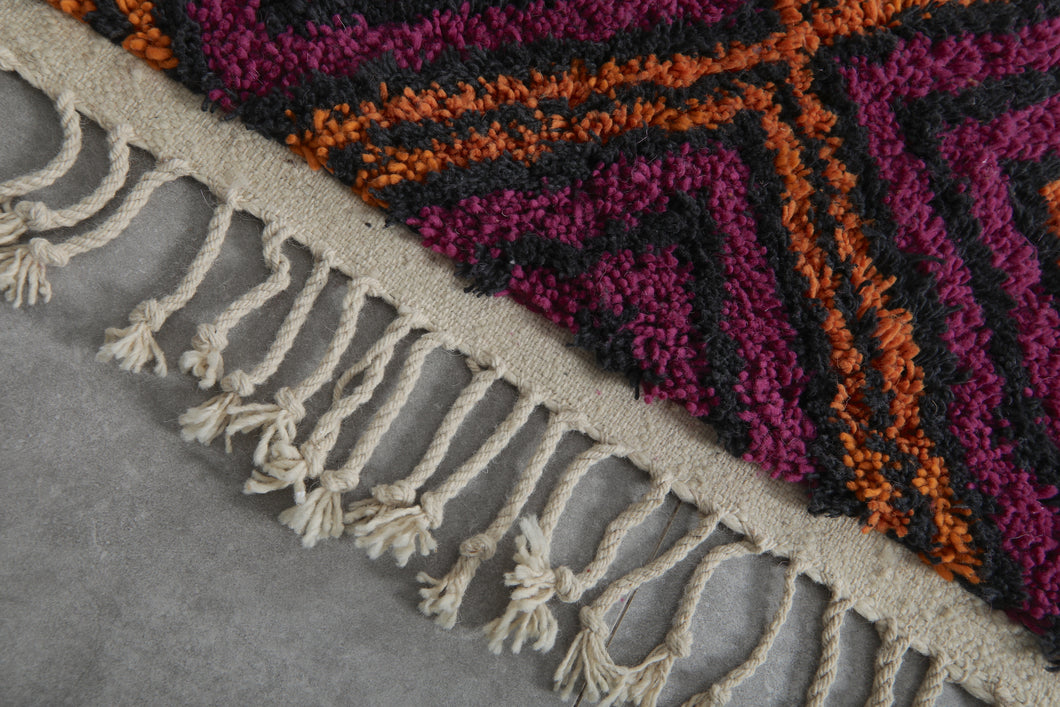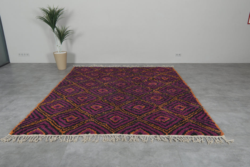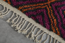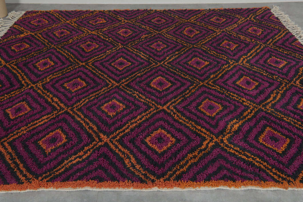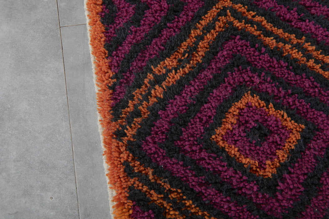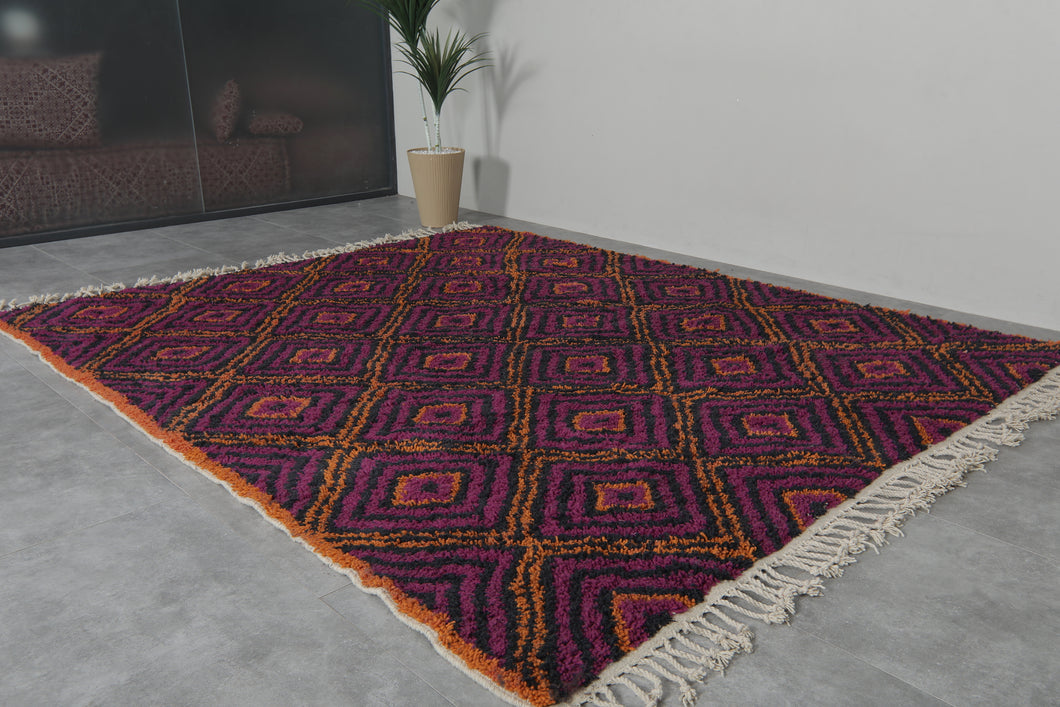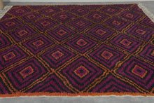 Purple & Orange Diamond Pattern Moroccan Rug - Handmade Berber Wool Carpet