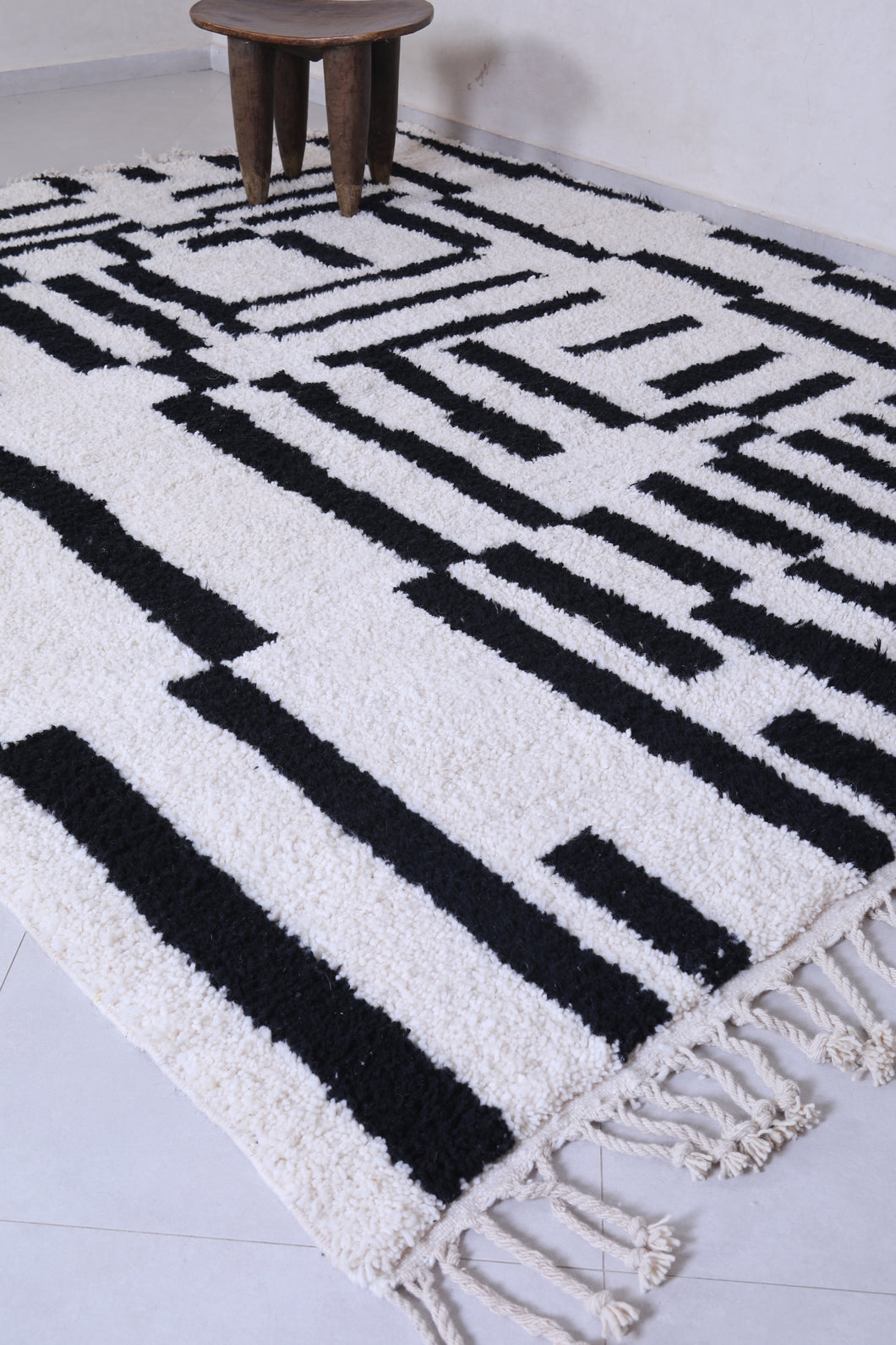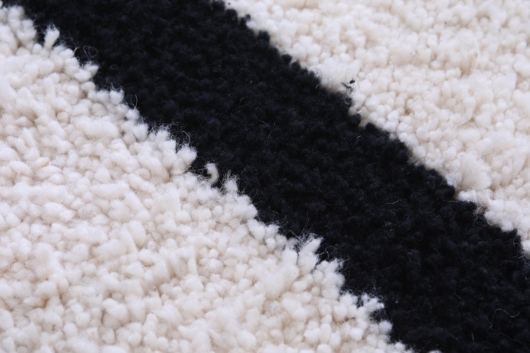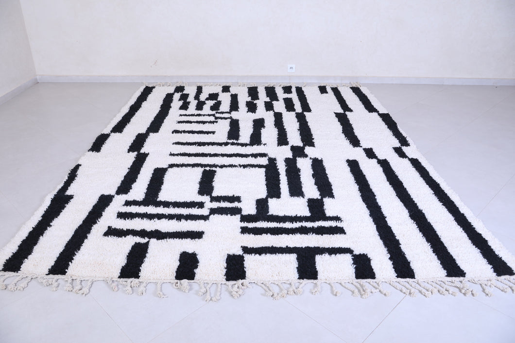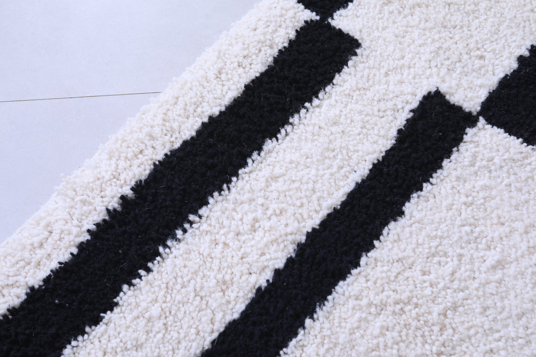 Transform your living space with this modern handmade Moroccan shag rug, featuring a bold black and white geometric pattern. Crafted from premium materials, this luxurious rug provides a soft, plush texture underfoot while its striking design becomes the centerpiece of any room. Ideal for contemporary or minimalist interiors, the contrasting tones add a sophisticated flair. Perfect for living rooms, bedrooms, or offices, this rug combines artistry and comfort effortlessly.