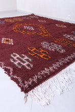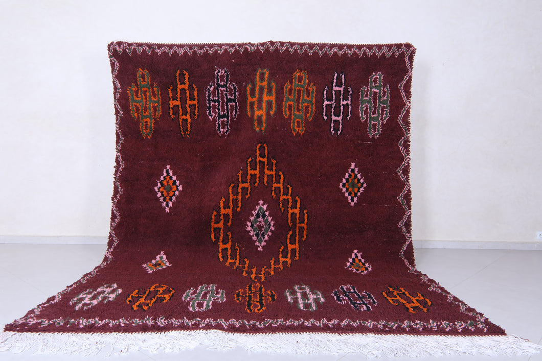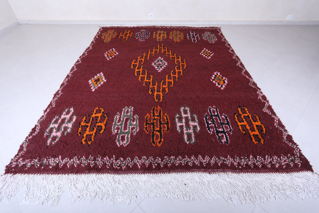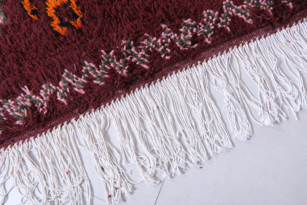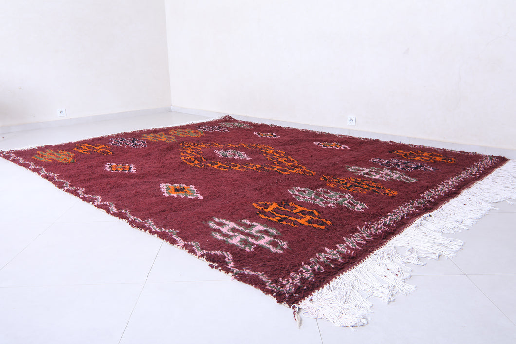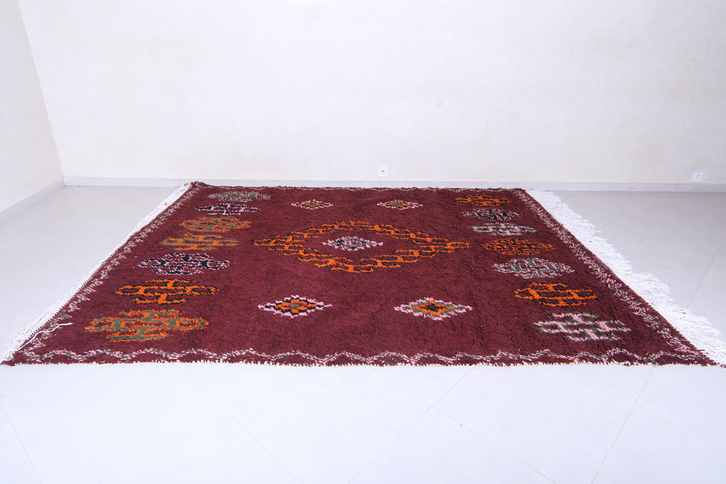 Add a rich cultural touch to your home with this handmade Moroccan rug in a deep burgundy tone, featuring vibrant tribal patterns. Crafted from premium wool, this custom area rug combines traditional Moroccan craftsmanship with bold, colorful designs, making it a stunning focal point for living rooms, bedrooms, or offices. Its intricate motifs and warm hues bring a cozy yet sophisticated ambiance to any space. Perfect for those who appreciate authentic artistry and timeless elegance, this rug is a statement piece that exudes charm and character.