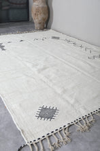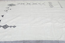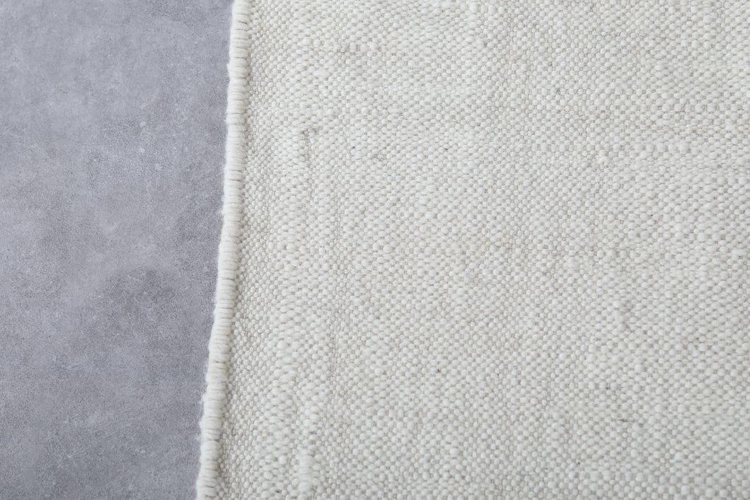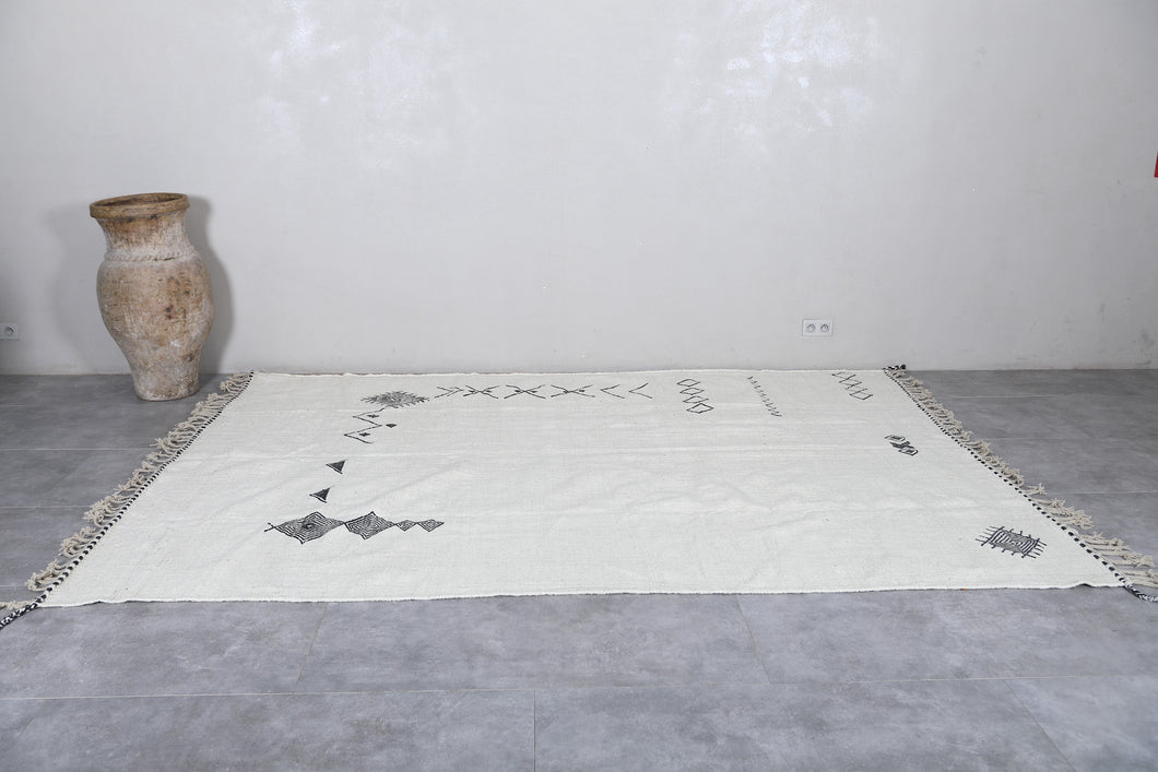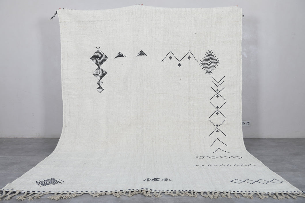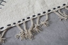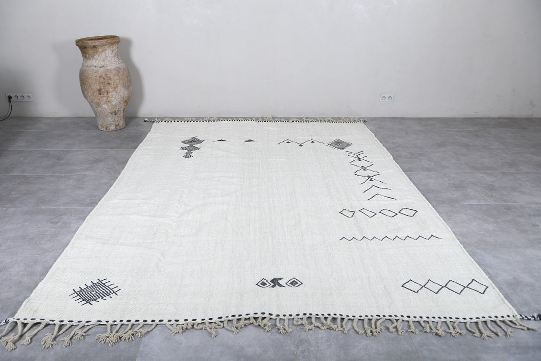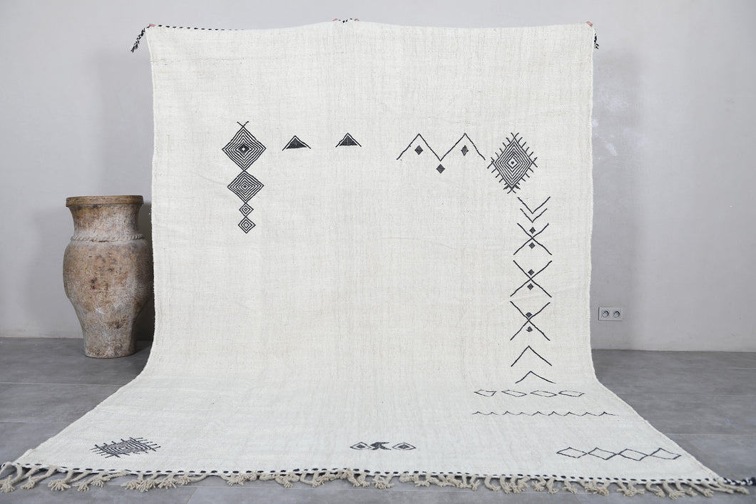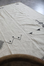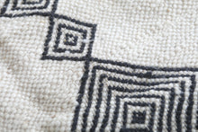 Enhance your space with this minimalist white rug featuring intricate black geometric embroidery. Expertly handcrafted by artisans, this rug combines elegance and cultural charm. The subtle yet captivating design is perfect for contemporary, bohemian, or eclectic interiors.