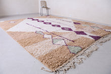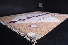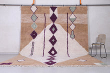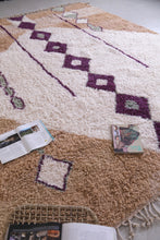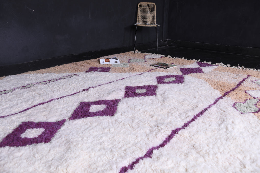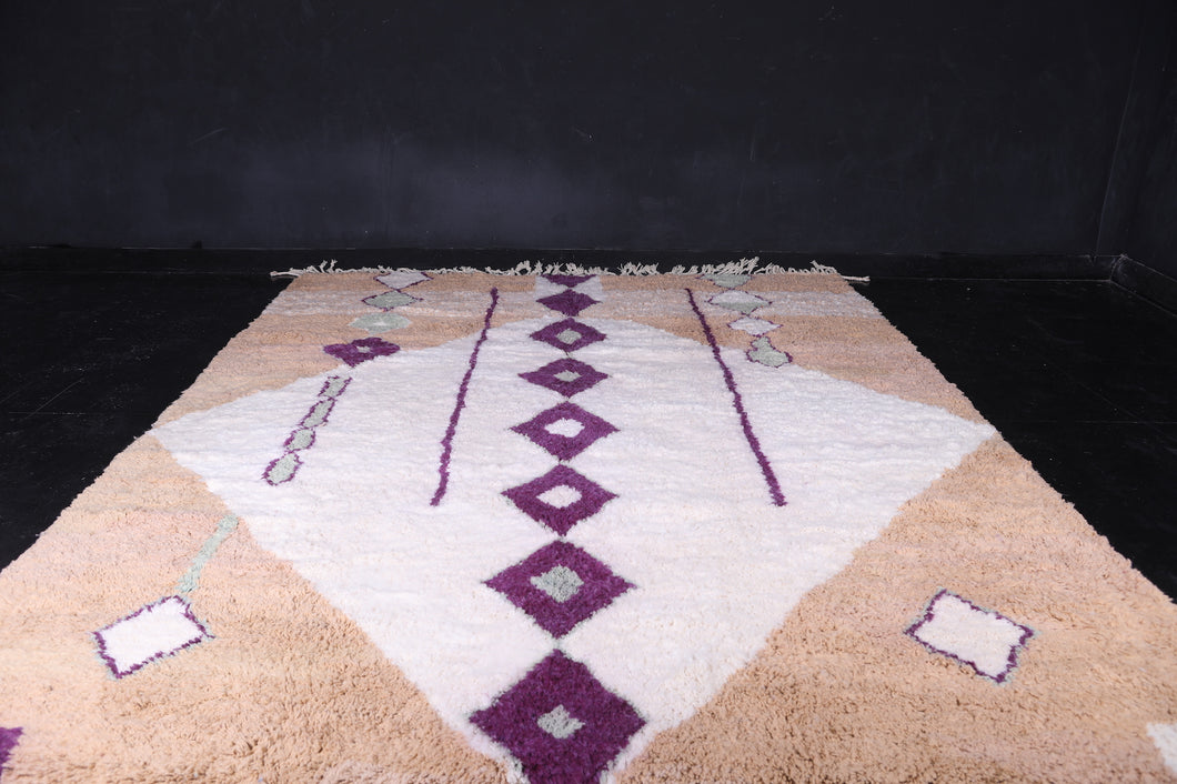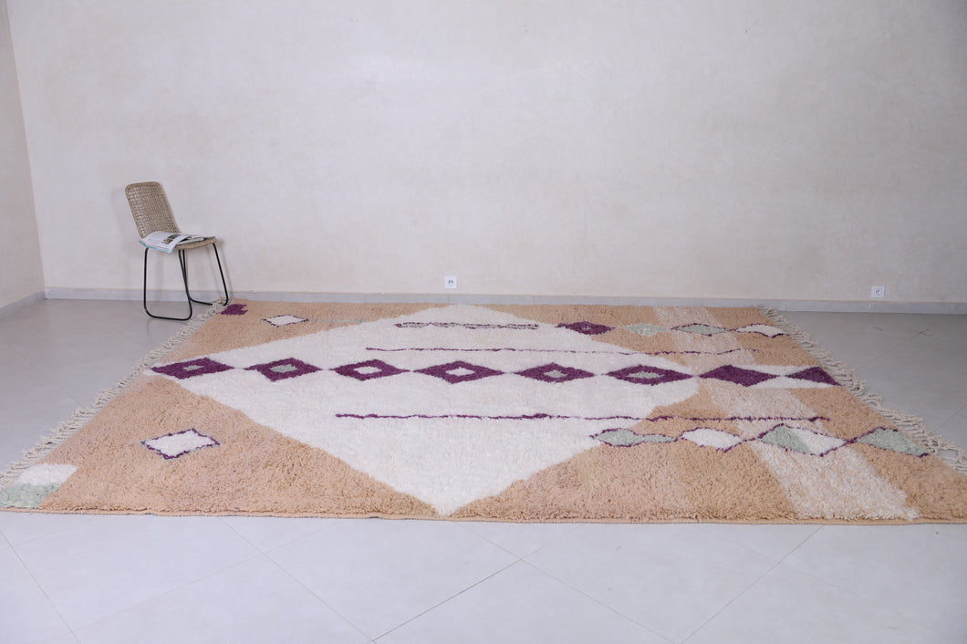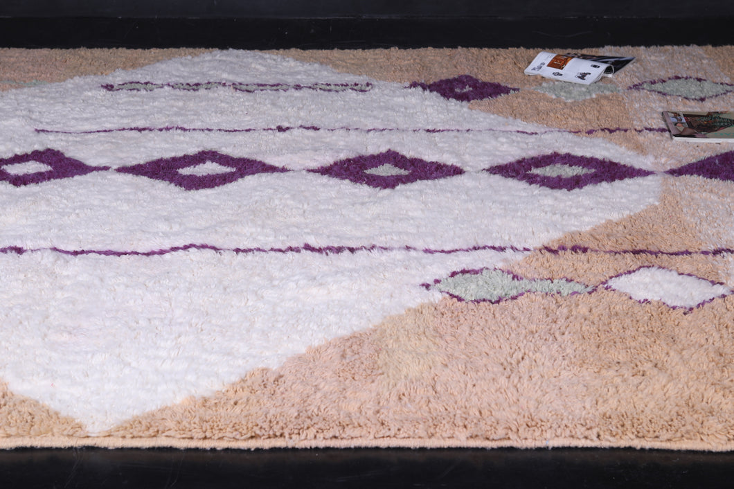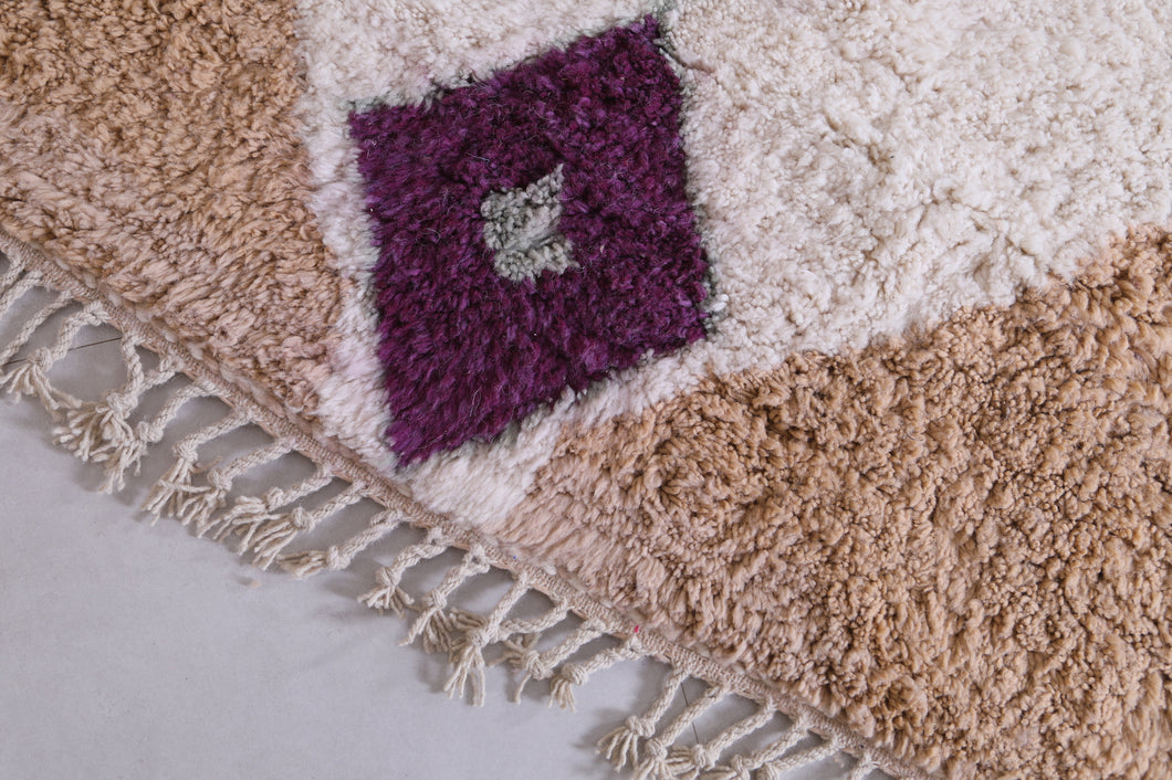 Enhance your home decor with this unique handmade Moroccan rug, featuring a stunning geometric design in warm earthy tones, accented with purple and mint green. Made from high-quality wool, this custom area rug is soft, durable, and perfect for creating a cozy atmosphere in your living room, bedroom, or office. Its intricate patterns and vibrant colors add a modern yet traditional touch to any space. Available in various sizes to suit your needs.