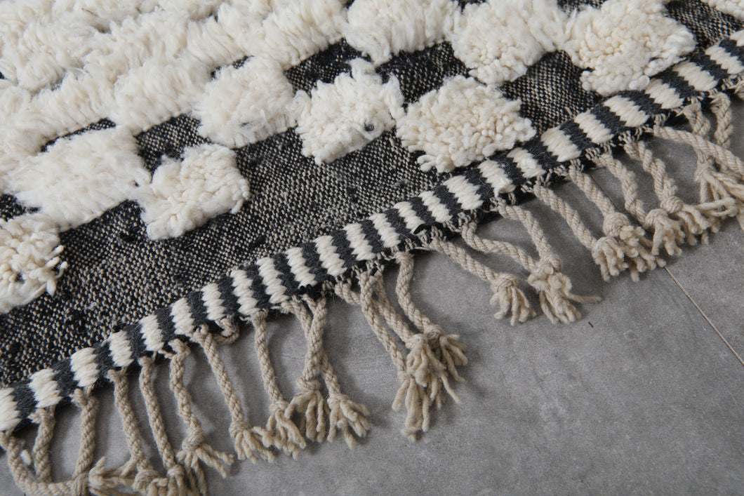 Checkered Moroccan Wool Rug - Black and White Elegance