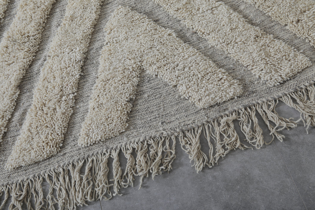 Elevate your home with this Handwoven Moroccan Berber Rug featuring a stunning geometric design. Crafted from premium wool, this rug offers both style and comfort. Ideal for modern or bohemian spaces, it showcases intricate Berber craftsmanship. Shop now for timeless elegance.