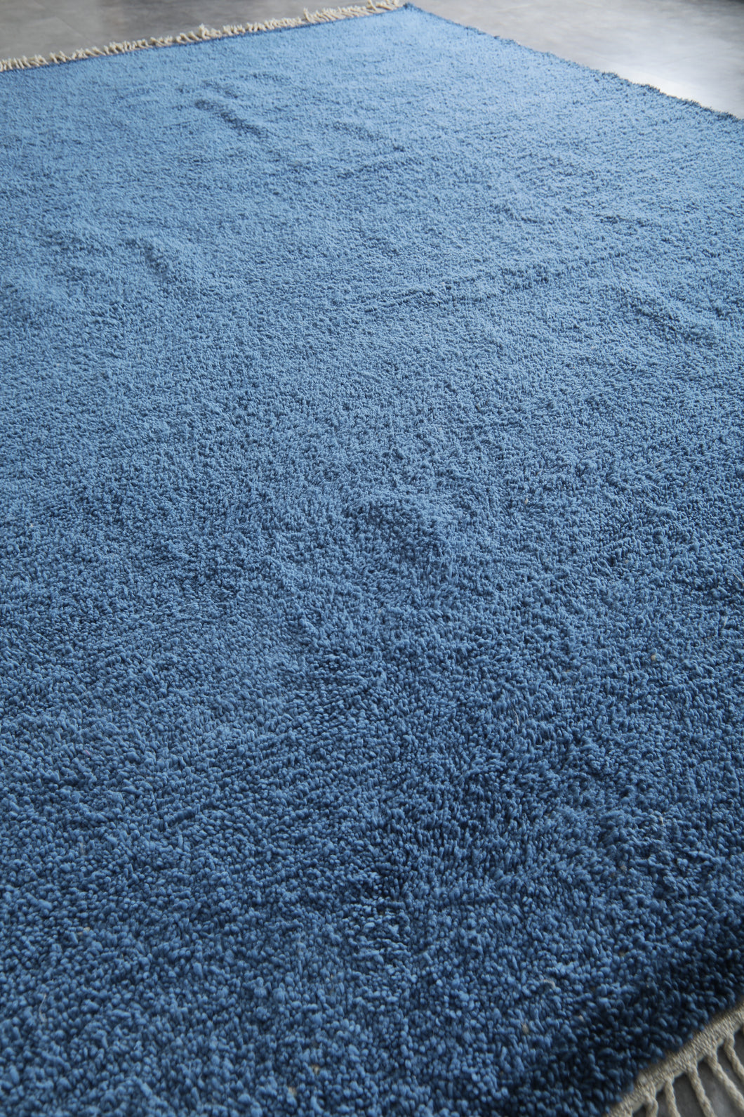 This handwoven Moroccan rug combines rich shades of blue, bringing a vibrant yet serene atmosphere to any space. Made from 100% natural wool, it features traditional Berber geometric patterns with a contemporary touch, blending cultural heritage with modern design. The soft, durable wool offers a cozy texture underfoot while making a bold design statement in your home. Available in various sizes, this rug adds sophistication and warmth to any room.
