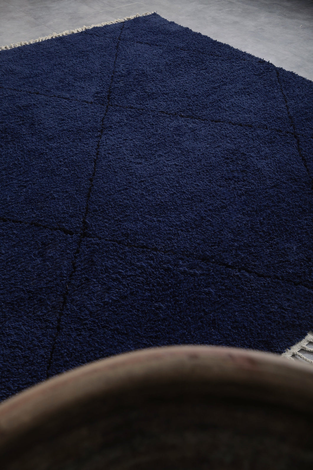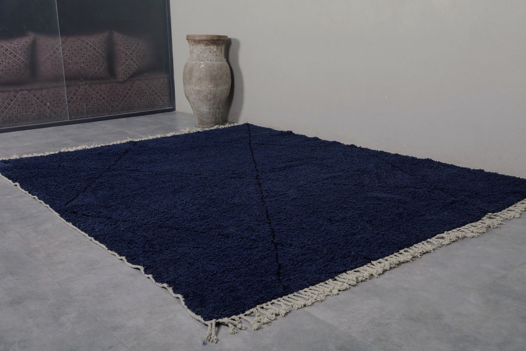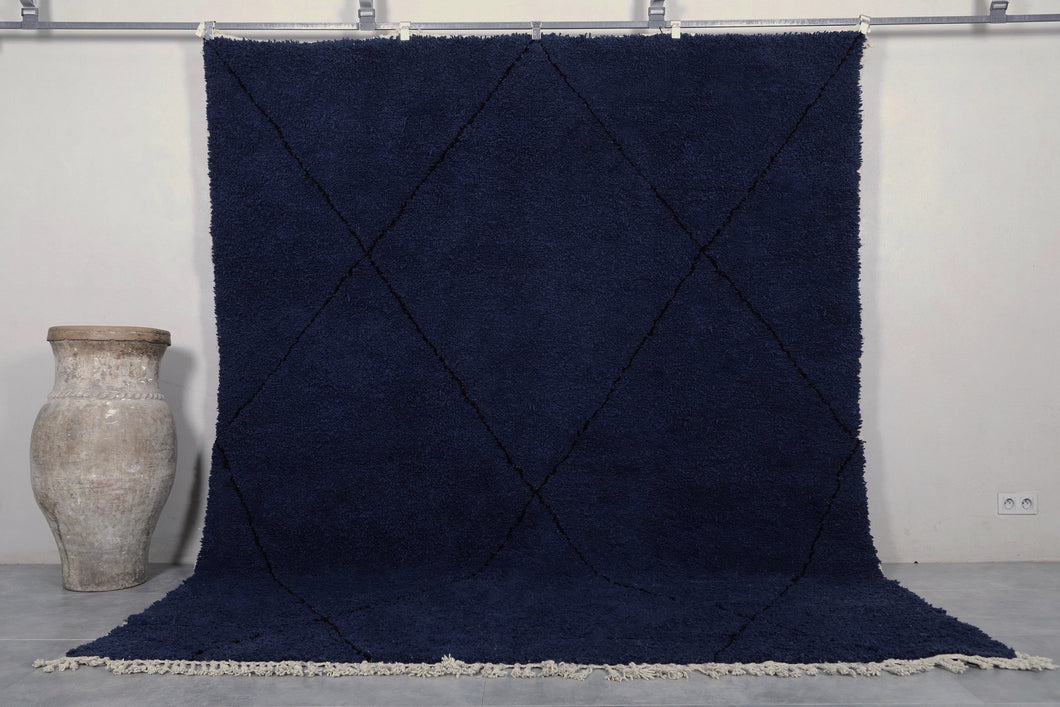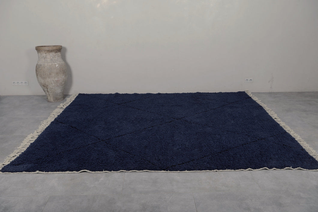 Transform your space with this stunning midnight blue wool rug, featuring a sleek geometric diamond pattern. Handwoven with premium wool, this rug offers a rich, deep hue that adds sophistication to any room. Its plush texture ensures comfort underfoot, making it a perfect choice for living rooms, bedrooms, or offices. Durable and easy to maintain, this rug brings both style and practicality to your home. Elevate your decor with this timeless piece that seamlessly blends modern design with traditional craftsmanship.
