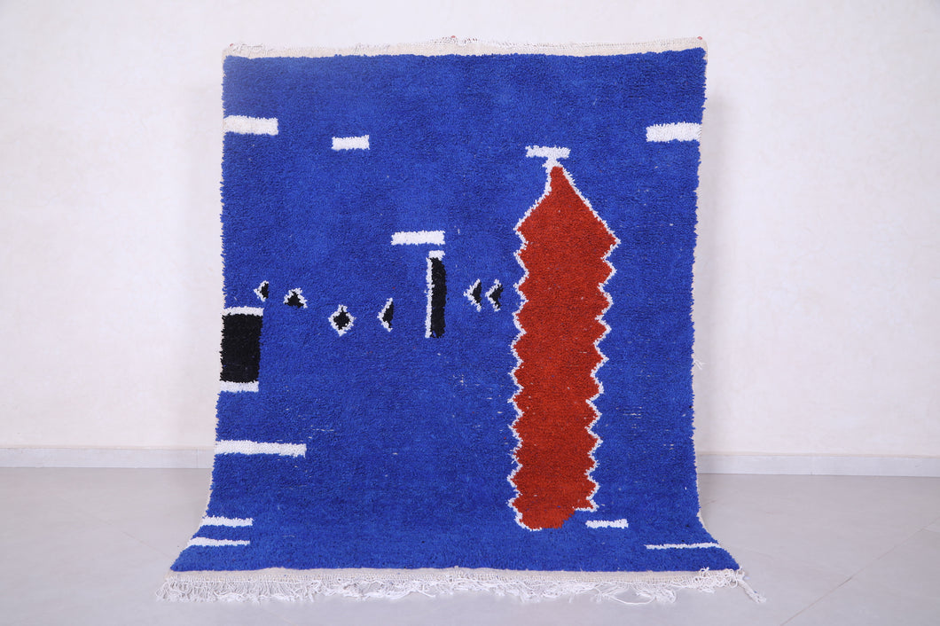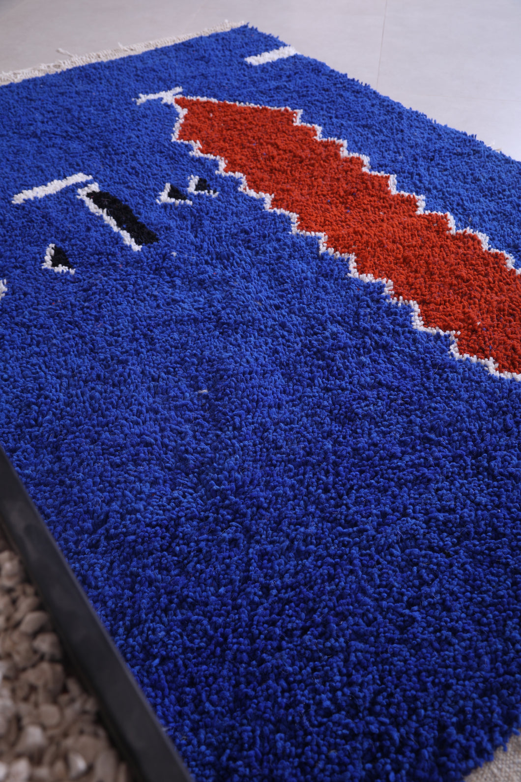 Moroccan Berber Blue and Red Rug - Handmade Wool Carpet