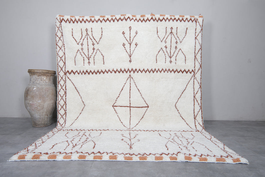 Transform your space with this stunning Moroccan Berber Handmade Carpet, featuring intricate brown tribal patterns and a beautifully bordered design. Crafted with care from 100% natural wool, this timeless piece brings warmth, comfort, and an authentic bohemian touch to your home. Perfect for living rooms, bedrooms, or any modern boho space, this rug is both functional and artistic.