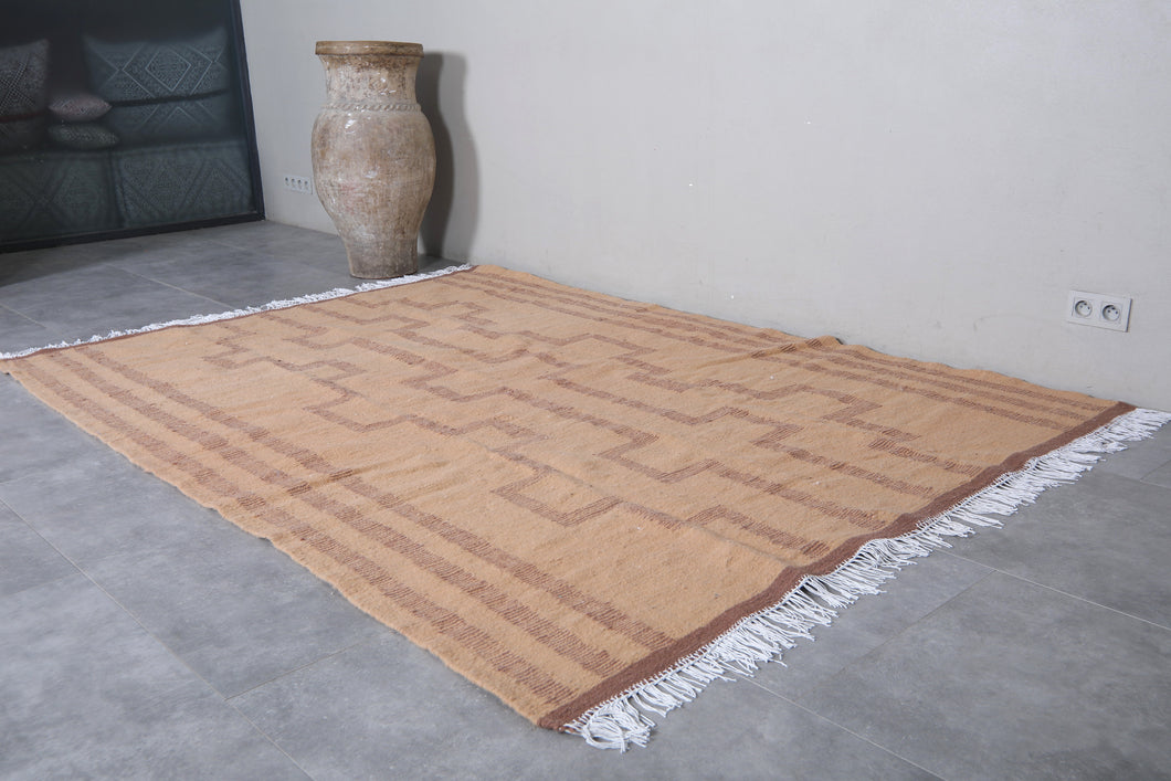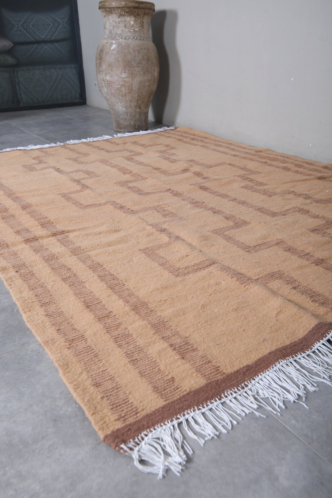 Elevate your home with this beautifully crafted Moroccan flatwoven rug. Featuring a striking geometric Berber pattern, this rug is a perfect blend of tradition and contemporary design. The earthy beige tones bring warmth and versatility, making it a suitable addition to any room. Handwoven by skilled Moroccan artisans, this rug ensures both durability and an authentic touch of craftsmanship. Ideal for modern, minimalist, or rustic interiors, it provides an easy-to-clean surface for practical everyday use. Customizable in size and pattern, it offers a personalized solution to your home decor needs.