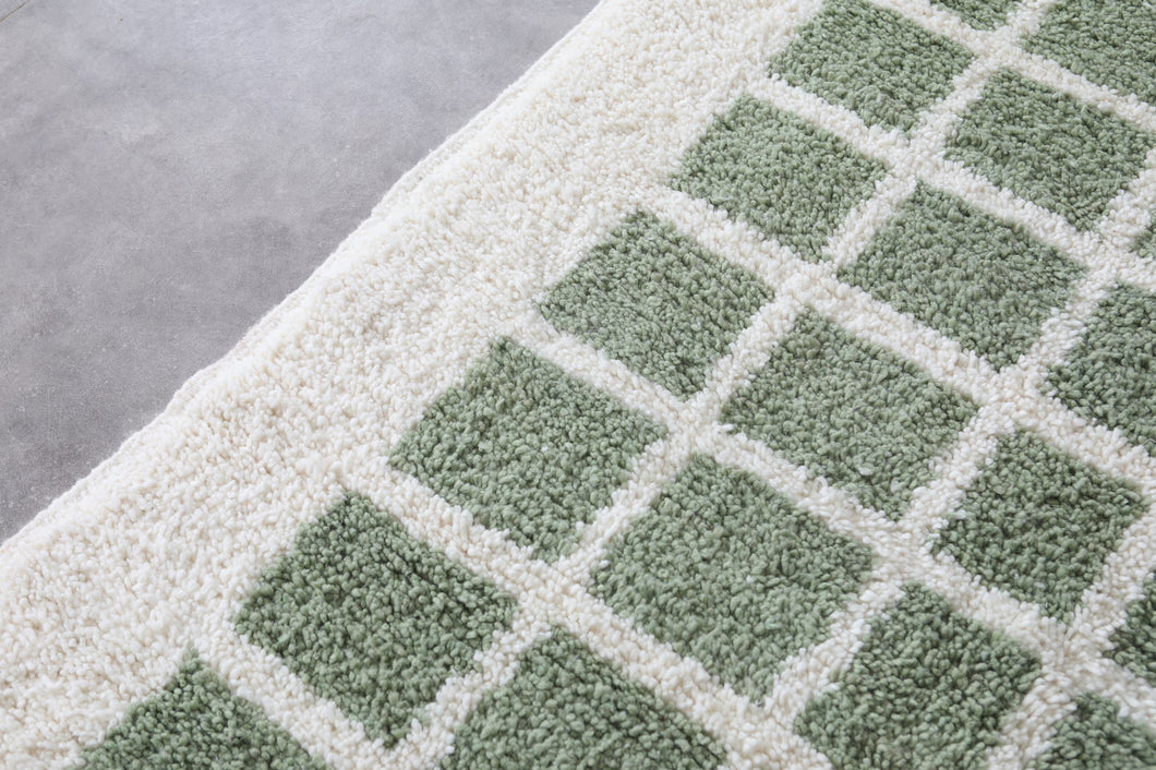Moroccan Green Rug - Square Pattern Handmade Custom Carpet