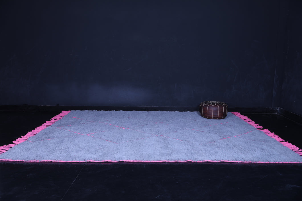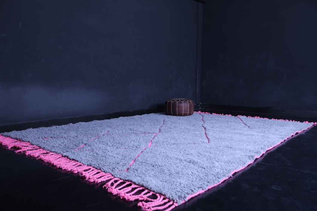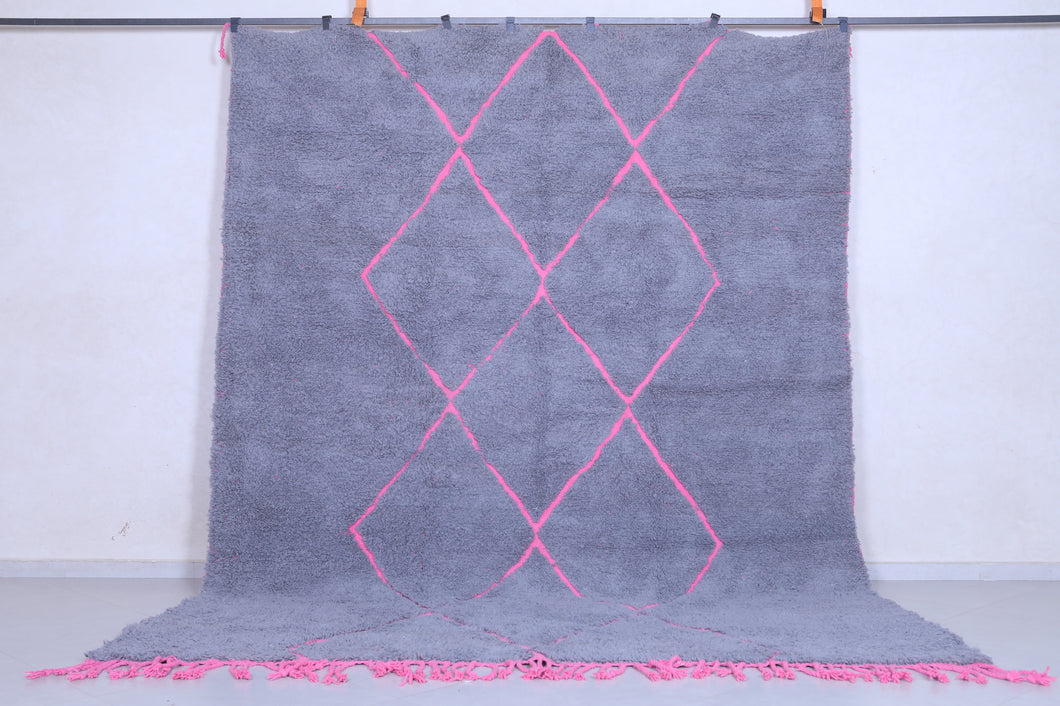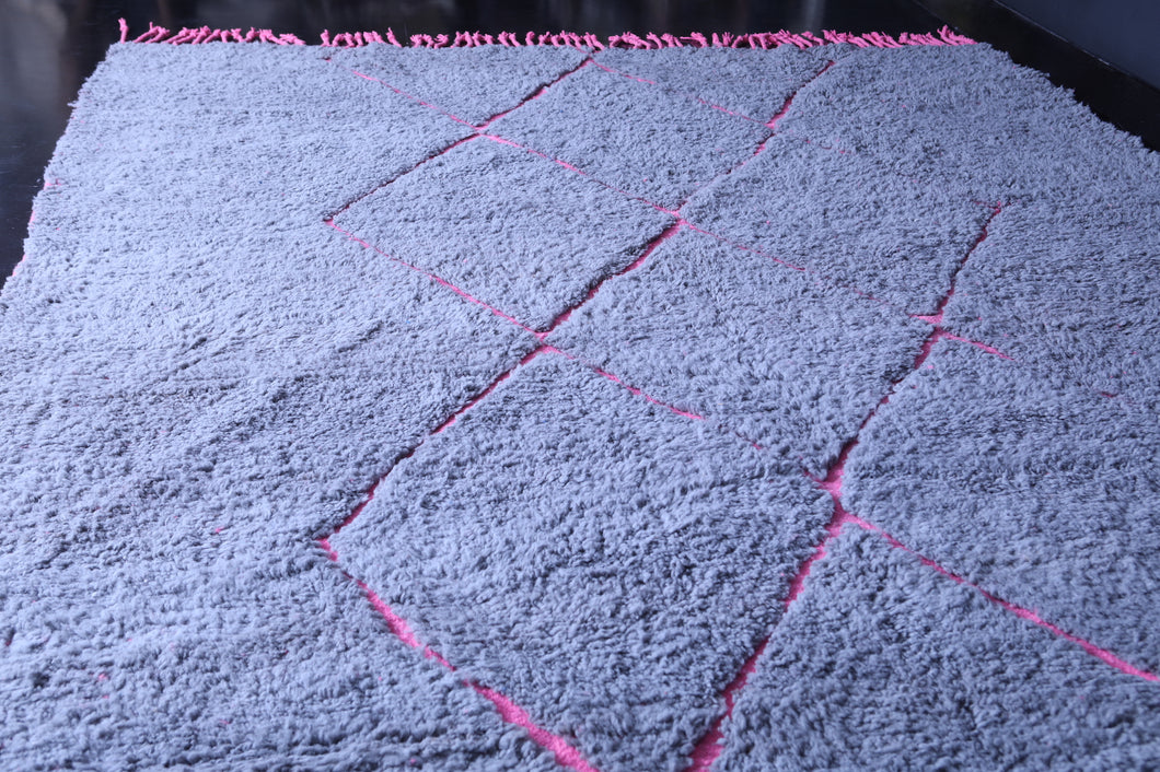 Transform your space with the modern elegance of this Grey Wool Rug featuring a Vibrant Pink Diamond Pattern. Handcrafted by talented Berber artisans, this rug merges traditional craftsmanship with contemporary design, creating a bold statement for your home.