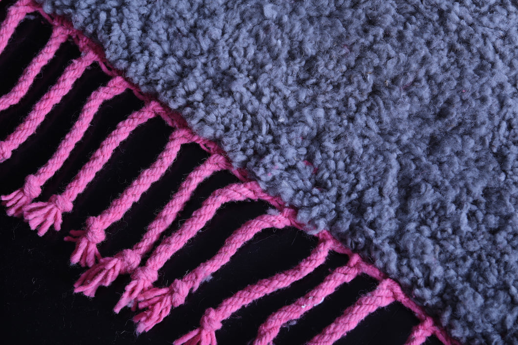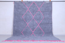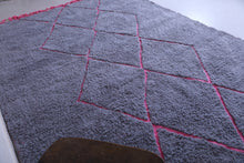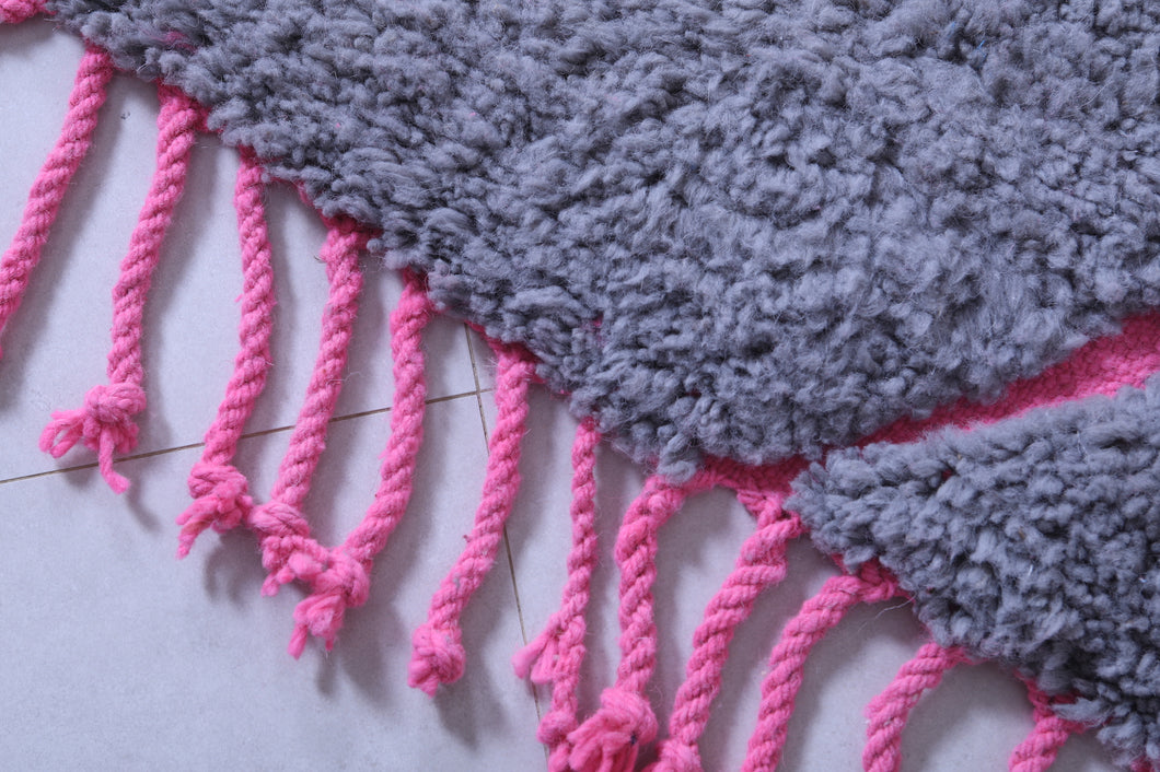 Grey Wool Rug with Pink Diamond Pattern - Handmade Berber Carpet