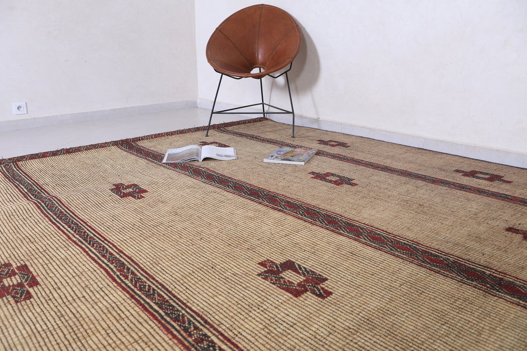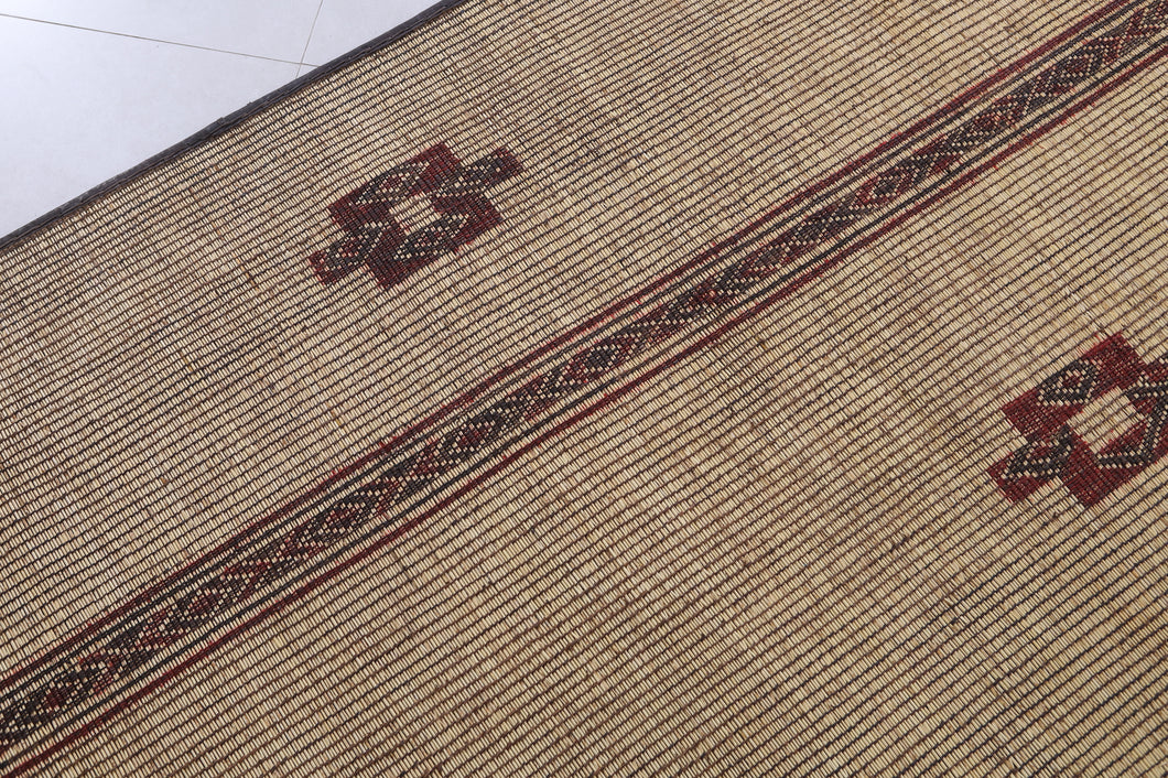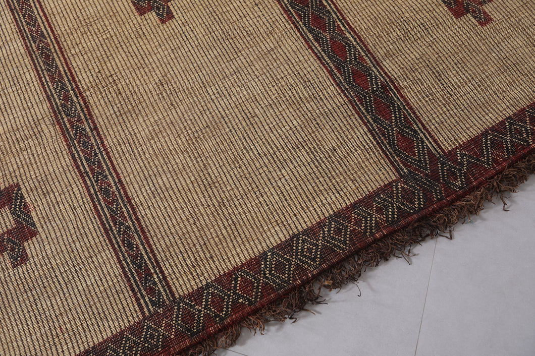 Discover the elegance of this 7.6x15.1 Ft Tuareg mat, a stunning handwoven masterpiece crafted by nomadic artisans of the Sahara. Made from natural reeds and adorned with leather accents, this unique rug showcases intricate tribal motifs and patterns. Perfect for large spaces, this mat brings a rustic, cultural charm to living rooms, dining areas, or outdoor settings. Durable and eco-friendly, it's a timeless piece of heritage.