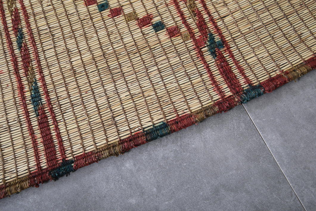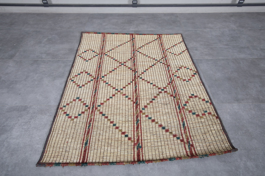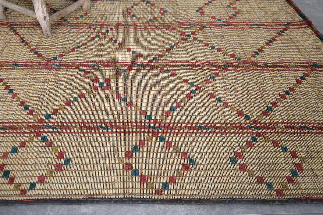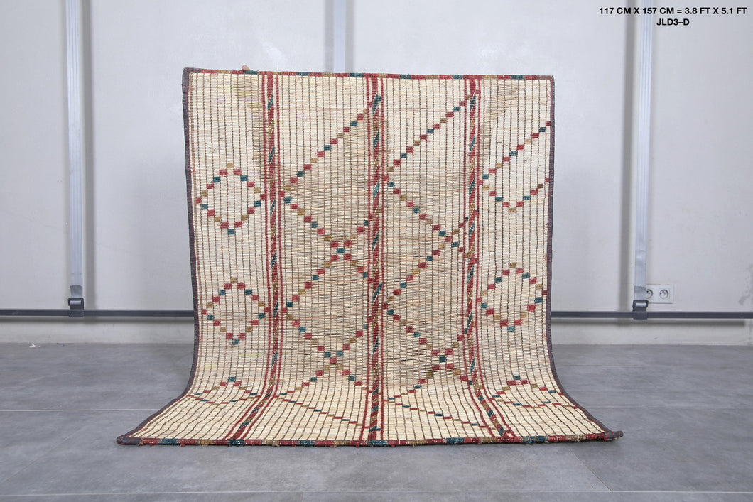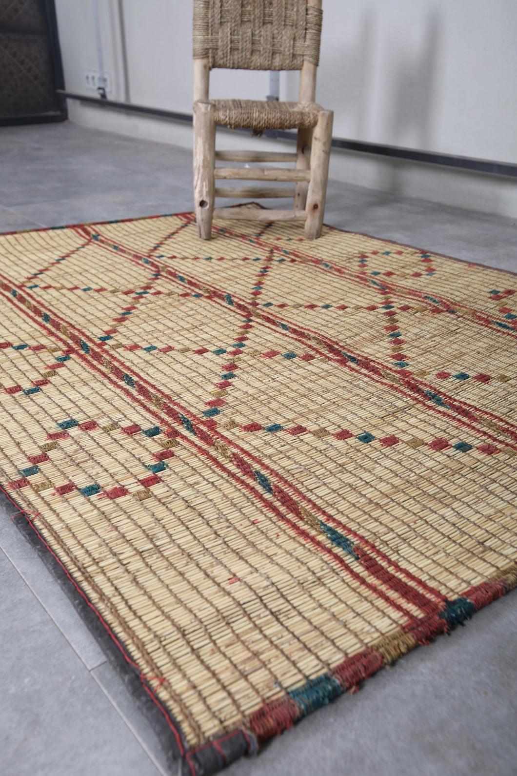 - 115x155 cm rug - 3.8x5.1 rug - Accent rug - Adjustable rug - African décor - African rug - Artisan-made mat - Authentic handwoven rug - bedroom rug - beige rug - boho chic rug - boutique rug - brown rug - Camel hide accent - Camel leather rug - camel leather trim - collector’s rug - compact rug - Cultural heritage rug - Decorative floor mat - decorative rug - Diamond motif rug - Dining room rug - Earth tone rug - Eco-conscious rug - eco-friendly rug - Entryway rug - Ethnic home decor - expressive pattern rug - Fair trade rug - flatweave rug - Floor mat - Geometric design rug - geometric pattern rug - Geometric Tuareg rug - global décor rug - hallway rug - Hand-loomed rug - handcrafted rug - Handmade African mat - Handmade Saharan mat - handwoven rug - handwoven Tuareg rug - Heavy-duty rug - heirloom rug - indoor outdoor rug - Interior decor - Leather mat accent - Leather-bound rug - living room rug - low-pile rug - luxury accent rug - Luxury rug - Mauritanian mat - Mauritanian rug - minimalist décor rug - modern rustic rug - museum quality rug - Natural decor - natural fiber rug - Natural reed rug - neutral décor rug - Nomadic decor - Nomadic rug - Nomadic shepherd rug - Organic rug - Outdoor rug - Palm fiber mat - Palm fiber rug - Palm reed rug - Patio rug - portable rug - premium accent rug - quality craftsmanship rug - Reed mat - Reed rug - Rug for outdoors - Rug wall art - rustic chic rug - Rustic home rug - Sahara decor - Sahara masterpiece - Saharan rug - Showpiece rug - Small area rug - Small Tuareg rug - statement accent rug - statement floor piece - Statement piece rug - statement rug - stylish home rug - sustainable rug - Traditional nomad rug - traditional weave rug - travel-friendly rug - Tribal decor - tribal rug - Tuareg masterpiece - Tuareg reed rug - Tuareg rug - Tuareg tribes rug - Unique rug - Vintage reed rug - Vintage-style rug - Wall hanging rug
