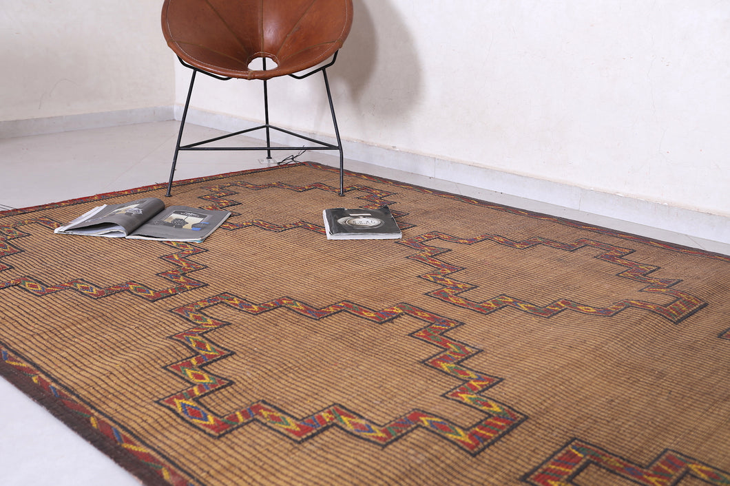 Transform your living space with this stunning 5.3 x 11.6 ft Tuareg Rug. Designed by Saharan artisans, this handwoven masterpiece features intricate geometric patterns framed with vibrant accents. Crafted from durable natural palm fibers and adorned with leather trim, this rug is a statement piece for hallways, large living rooms, or dining areas. Its timeless tribal aesthetic blends seamlessly with modern, rustic, or bohemian decor.