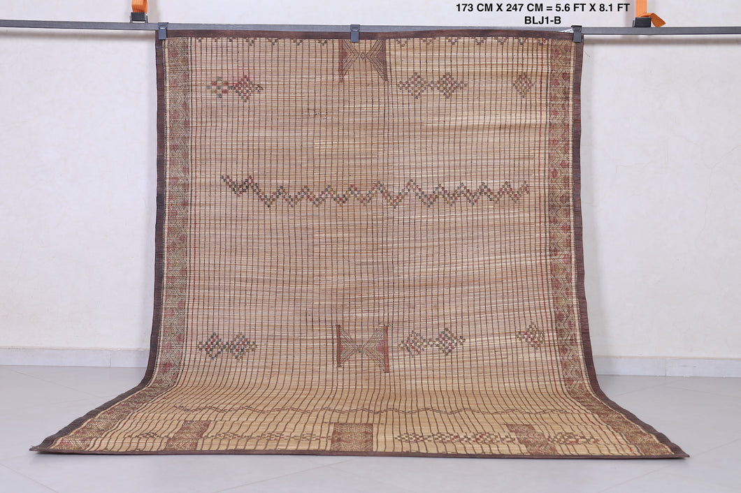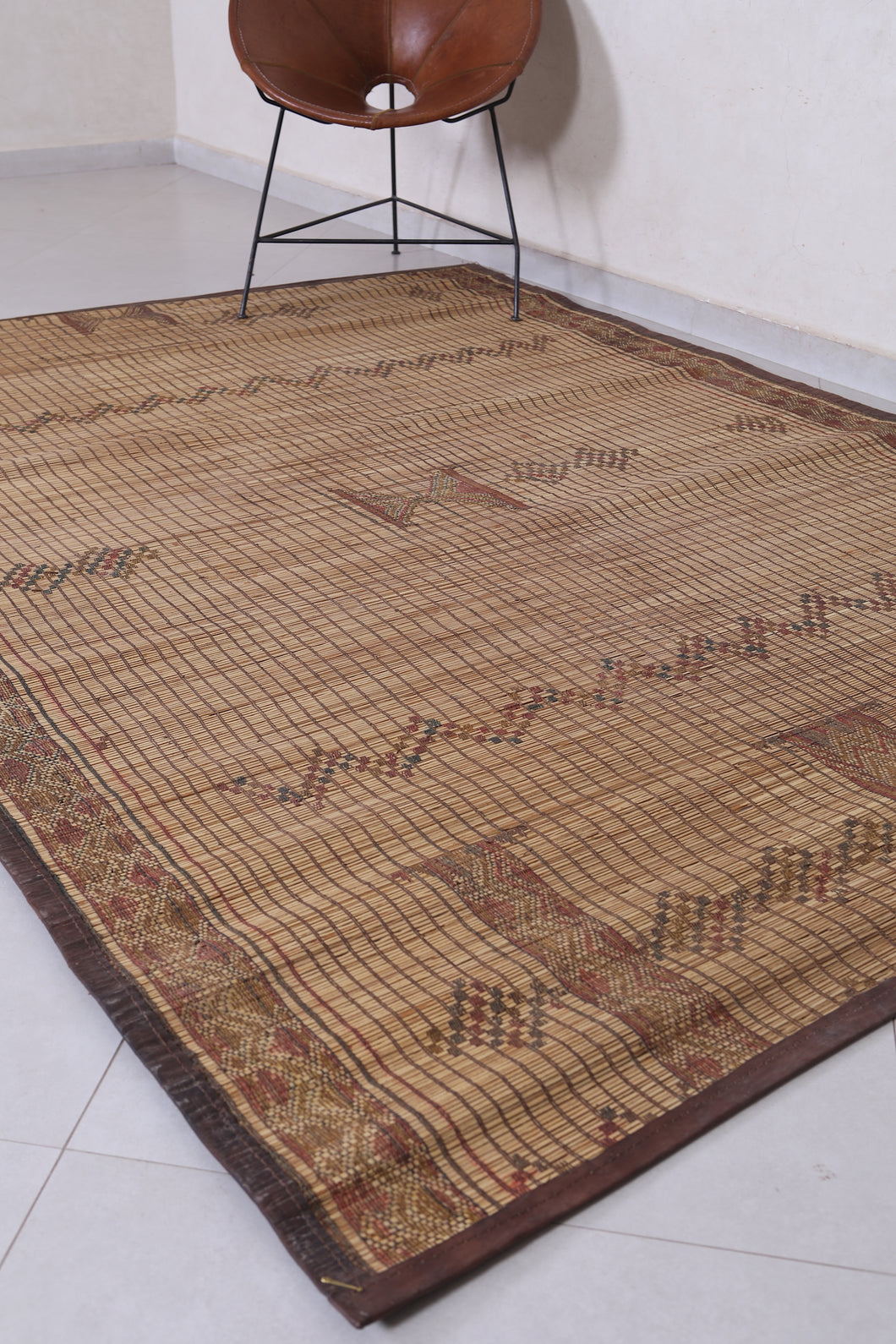 - 183x265 cm rug - 5.6x8.1 rug - 6x8.7 rug - Adjustable rug - African décor - African rug - Artisan-made mat - Authentic handwoven rug - Authentic Tuareg rug - bedroom rug - beige rug - black accent rug - boho chic rug - brown rug - Camel hide accent - Camel leather rug - camel leather trim - collector’s rug - cream rug - Cultural heritage rug - Decorative floor mat - desert-inspired rug - Dining room rug - durable rug - Earth tone rug - Eco-conscious rug - eco-friendly rug - Entryway rug - Ethnic home decor - Fair trade rug - flatweave rug - Floor mat - Geometric design rug - geometric pattern rug - Geometric Tuareg rug - global décor rug - Hand-loomed rug - handcrafted rug - Handmade African mat - Handmade Saharan mat - handwoven tribal rug - Heavy-duty rug - heirloom rug - indoor outdoor rug - Interior decor - Leather mat accent - Leather-bound rug - living room rug - low-pile rug - Luxury rug - Mauritanian mat - Mauritanian rug - medium area rug - minimalistic décor rug - modern rustic rug - museum-quality rug - Natural decor - natural fiber rug - Natural reed rug - neutral décor rug - Nomadic decor - Nomadic rug - Nomadic shepherd rug - Organic rug - Outdoor rug - Palm fiber mat - Palm fiber rug - Palm reed rug - Patio rug - portable rug - premium rug - quality craftsmanship rug - Reed mat - Reed rug - Rug for outdoors - Rug wall art - Rustic home rug - Sahara decor - Sahara masterpiece - Saharan rug - Showpiece rug - statement floor covering - Statement piece rug - statement rug - sustainable rug - Traditional nomad rug - traditional weave rug - travel-friendly rug - Tribal decor - Tribal design rug - tribal heritage rug - Tribal masterpiece rug - Tuareg masterpiece - Tuareg reed rug - Tuareg rug - Tuareg tribes rug - Unique rug - Vintage reed rug - Vintage-style rug - Wall hanging rug