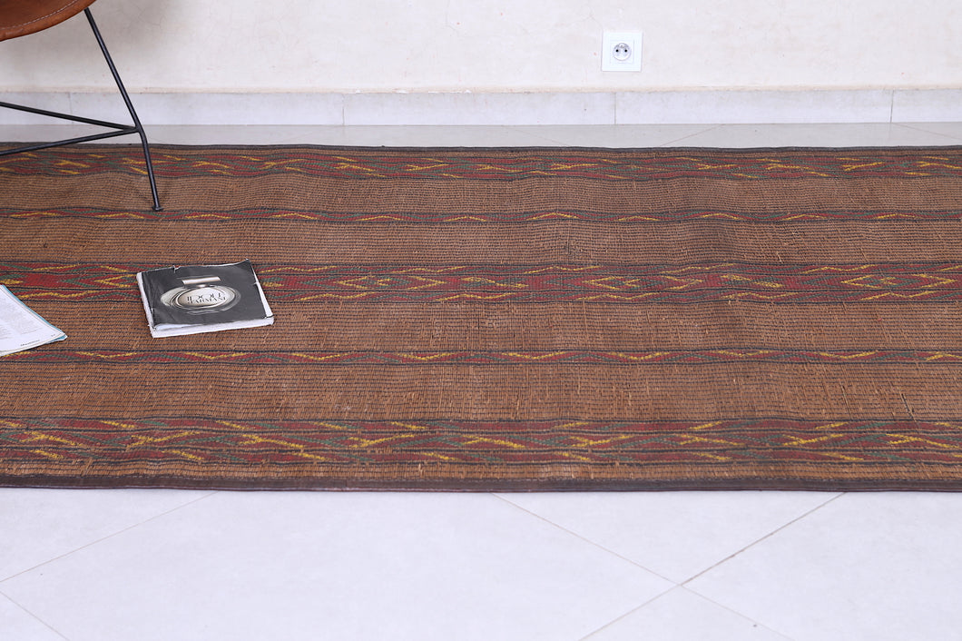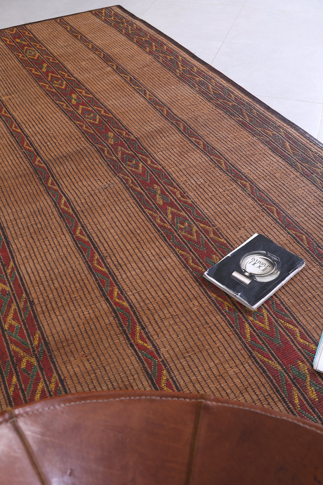 Introduce timeless artistry to your home with this stunning 5 x 10.8 ft Tuareg Rug. Handcrafted by skilled Tuareg artisans, this exquisite piece combines natural palm fibers and leather strips to create a durable and versatile floor covering. The intricate geometric patterns, adorned with earthy and vibrant tones, reflect the rich cultural heritage of the Sahara Desert nomads. Perfect for hallways, living spaces, or outdoor patios, this handmade rug is a unique addition to any bohemian, rustic, or minimalist decor style.