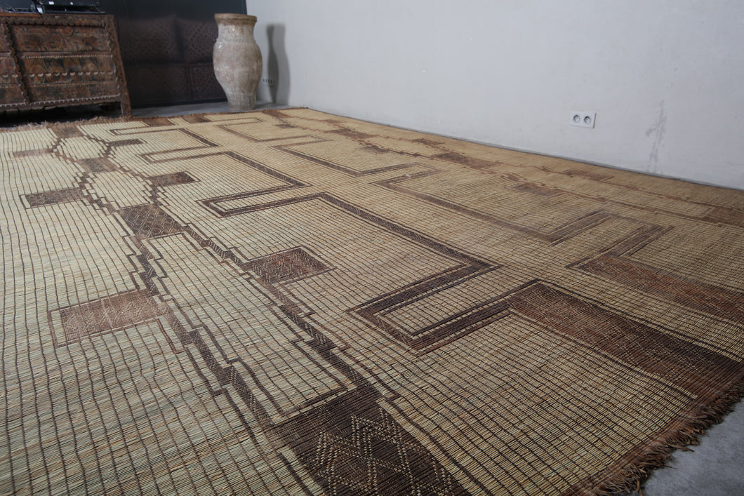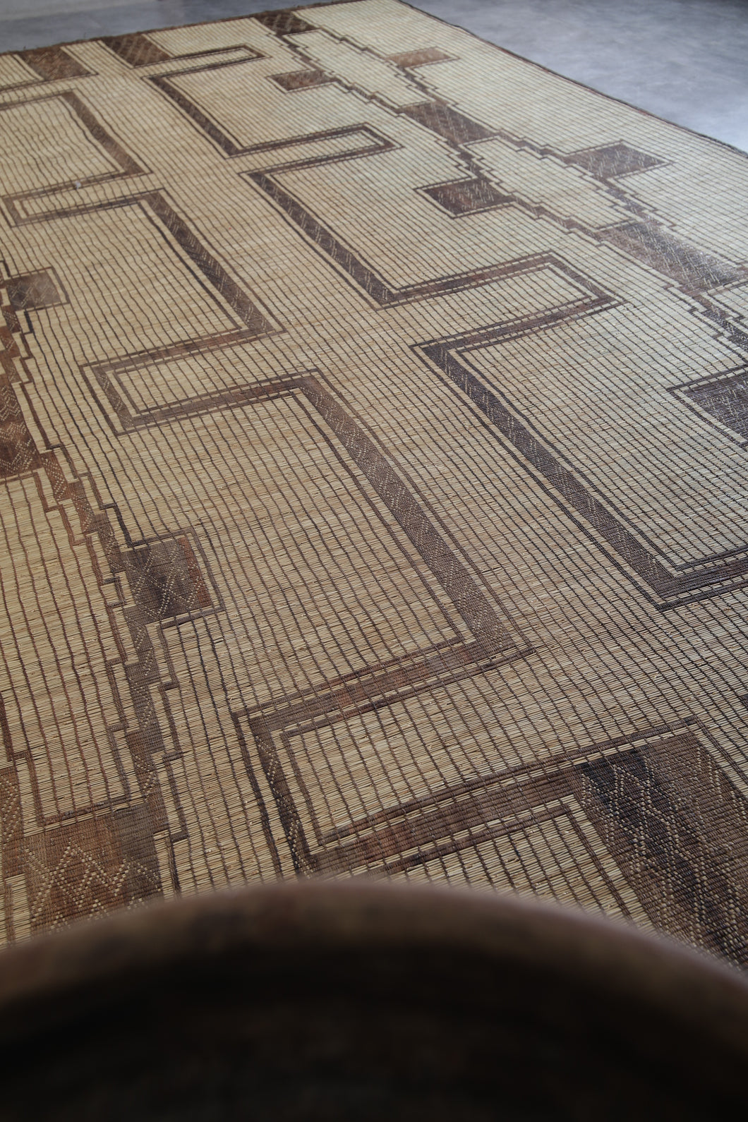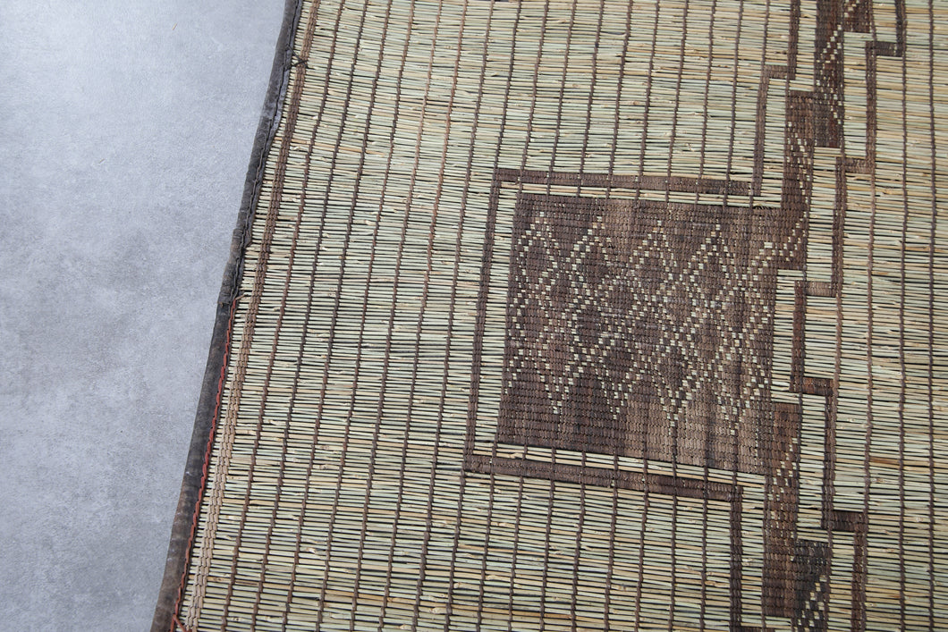 - 290x500 cm rug - 9.5x16.4 rug - 9’5”x16’4” rug - Adjustable rug - African décor - African rug - Artisan-made mat - Authentic handwoven rug - bedroom rug - beige rug - black accent rug - boho chic rug - brown rug - Camel hide accent - Camel leather rug - camel leather trim rug - collector’s rug - Cultural heritage rug - Decorative floor mat - Dining room rug - durable rug - Earth tone rug - Eco-conscious rug - eco-friendly rug - Entryway rug - Ethnic home decor - Extra large rug - Fair trade rug - flat laid rug - flatweave rug - Floor mat - Geometric design rug - Geometric masterpiece rug - Geometric Tuareg rug - global décor rug - great room rug - hallway rug - Hand-loomed rug - Handmade African mat - Handmade Saharan mat - handwoven Tuareg rug - Heavy-duty rug - heirloom rug - indoor outdoor rug - Interior decor - large area rug - Leather mat accent - Leather-bound rug - living room rug - low-pile rug - luxury home décor rug - Luxury rug - Mauritanian mat - Mauritanian rug - minimalist rug - modern rustic rug - museum quality rug - Natural decor - natural fiber rug - Natural reed rug - neutral décor rug - Nomadic decor - Nomadic rug - Nomadic shepherd rug - Organic rug - Outdoor rug - oversized rug - Oversized Tuareg rug - Palm fiber mat - Palm fiber rug - Palm reed rug - Patio rug - premium rug - quality craftsmanship rug - Reed mat - Reed rug - Rug for outdoors - Rug wall art - Rustic home rug - Sahara decor - Sahara masterpiece - Saharan rug - Showpiece rug - statement floor covering - statement living room rug - Statement piece rug - statement rug - sustainable rug - Traditional nomad rug - traditional weave rug - Tribal decor - tribal rug - Tuareg masterpiece - Tuareg reed rug - Tuareg rug - Tuareg tribes rug - Unique rug - Vintage reed rug - Vintage-style rug - Wall hanging rug