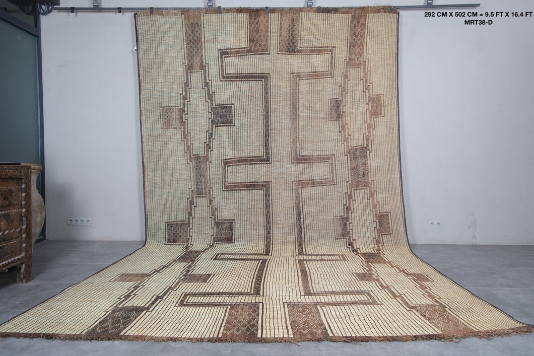Transform your living space with this stunning Tuareg rug, featuring bold geometric patterns that exude cultural richness and sophistication. Measuring 9.5 x 16.4 feet, this handwoven masterpiece is crafted from durable natural materials, ensuring longevity and timeless beauty. Perfect for large spaces, its earthy tones and intricate designs complement any modern or rustic decor. Ideal for indoor or outdoor settings, this rug blends functionality with artistic elegance. Add this extraordinary piece to your collection today and make a statement that celebrates heritage and style.