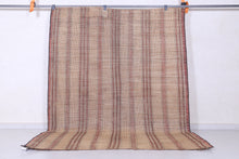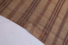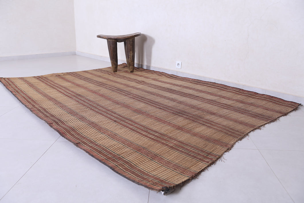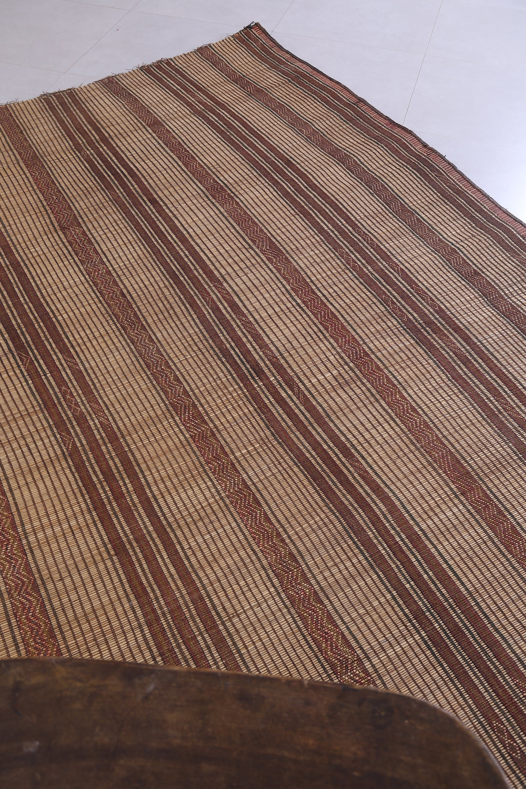 Elevate your living space with this stunning Tuareg rug, measuring 6.1 x 8.7 feet. Meticulously handwoven by Tuareg artisans, this masterpiece combines natural palm fibers with camel leather accents. The rich earth tones and symmetrical linear patterns provide a perfect balance of tradition and elegance, making it ideal for both modern and rustic interiors.