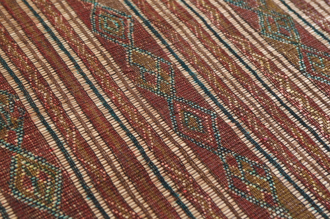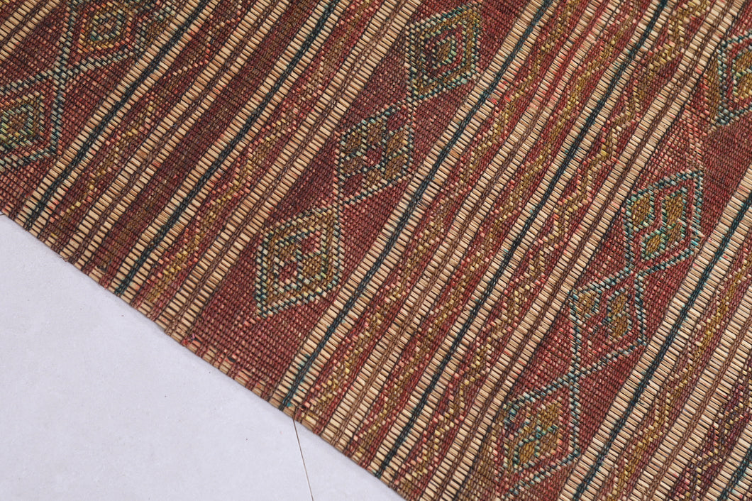 Traditional Tuareg reed mats represent an important feature of nomadic lifestyle. They were used as a floor covering protecting people from sand and insects. The mat’s simple natural beige background is contrasted by red designs of different shapes, but in spite of this seeming simplicity the mat projects creative and powerful presence. The mat can be installed in any modern space bringing traditional dimension to the interior.