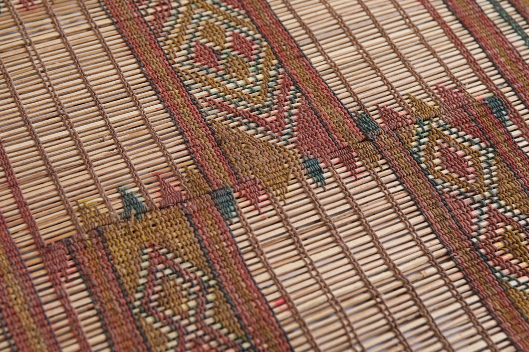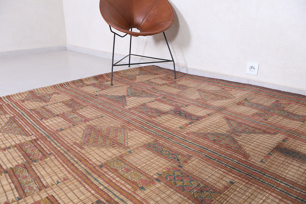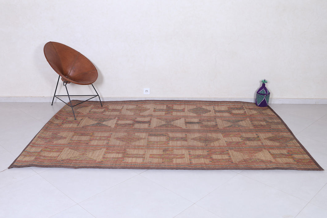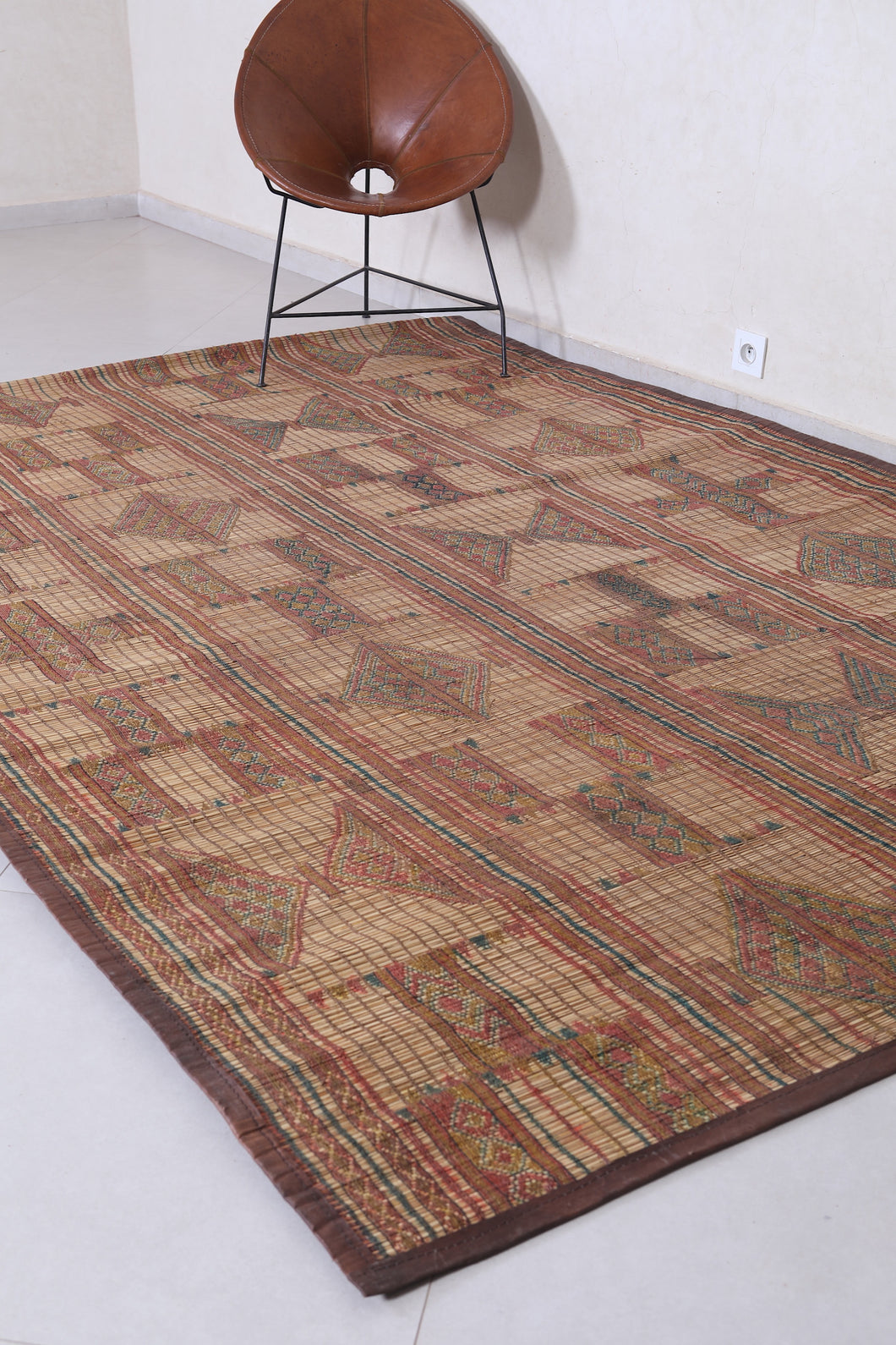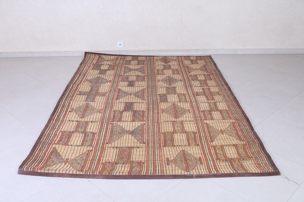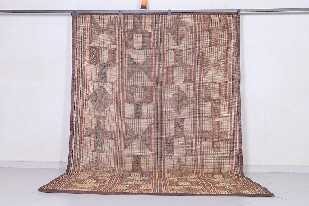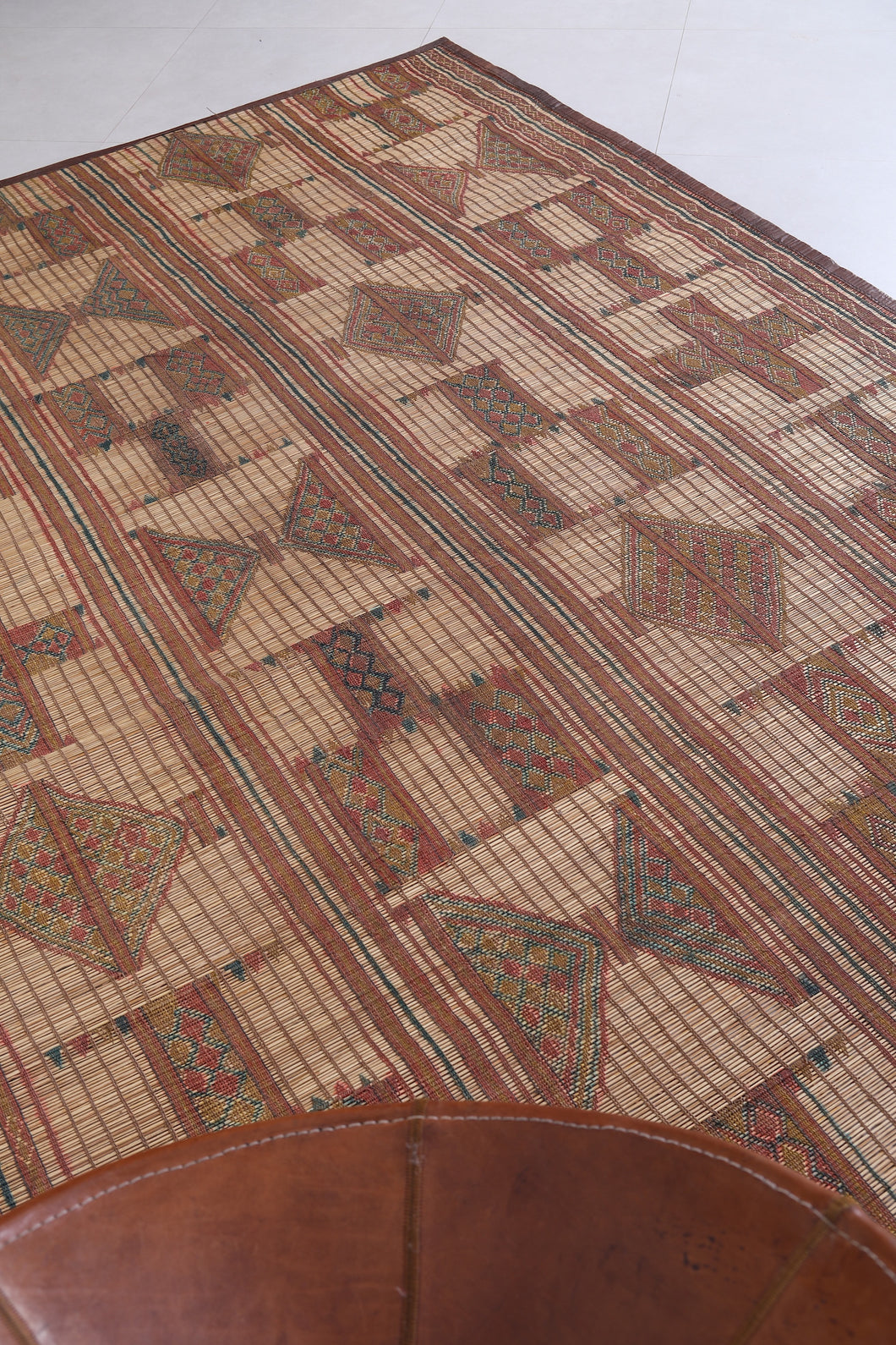 This unique Mauritanian mat woven out of plant fibers serves as a floor covering inside the Saharan house keeping alive traditions of nomadic lifestyle. Used as floor covering to protect from insects, dust, sand, water and cold, African reed mats have served people for generations. Bring a new dimension to your modern life style by adding this terrific work of tribal art to your home interior.