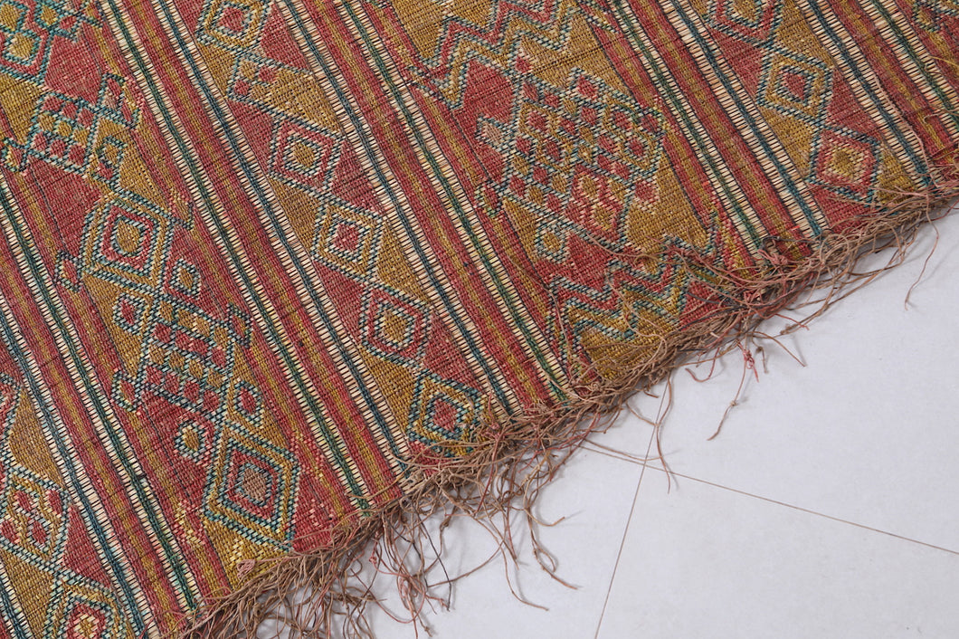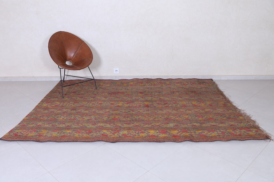Elevate your home decor with this exquisite 6.3x8.5 ft Tuareg rug, a stunning example of traditional North African craftsmanship. Featuring intricate geometric patterns in vibrant, earthy tones, this vintage handwoven mat is made from durable natural materials like reed and leather. Its unique design adds a touch of bohemian charm and cultural authenticity to any space, making it perfect for living rooms, bedrooms, or patios. This one-of-a-kind piece effortlessly blends functionality with artistic beauty, suitable for both indoor and outdoor use.